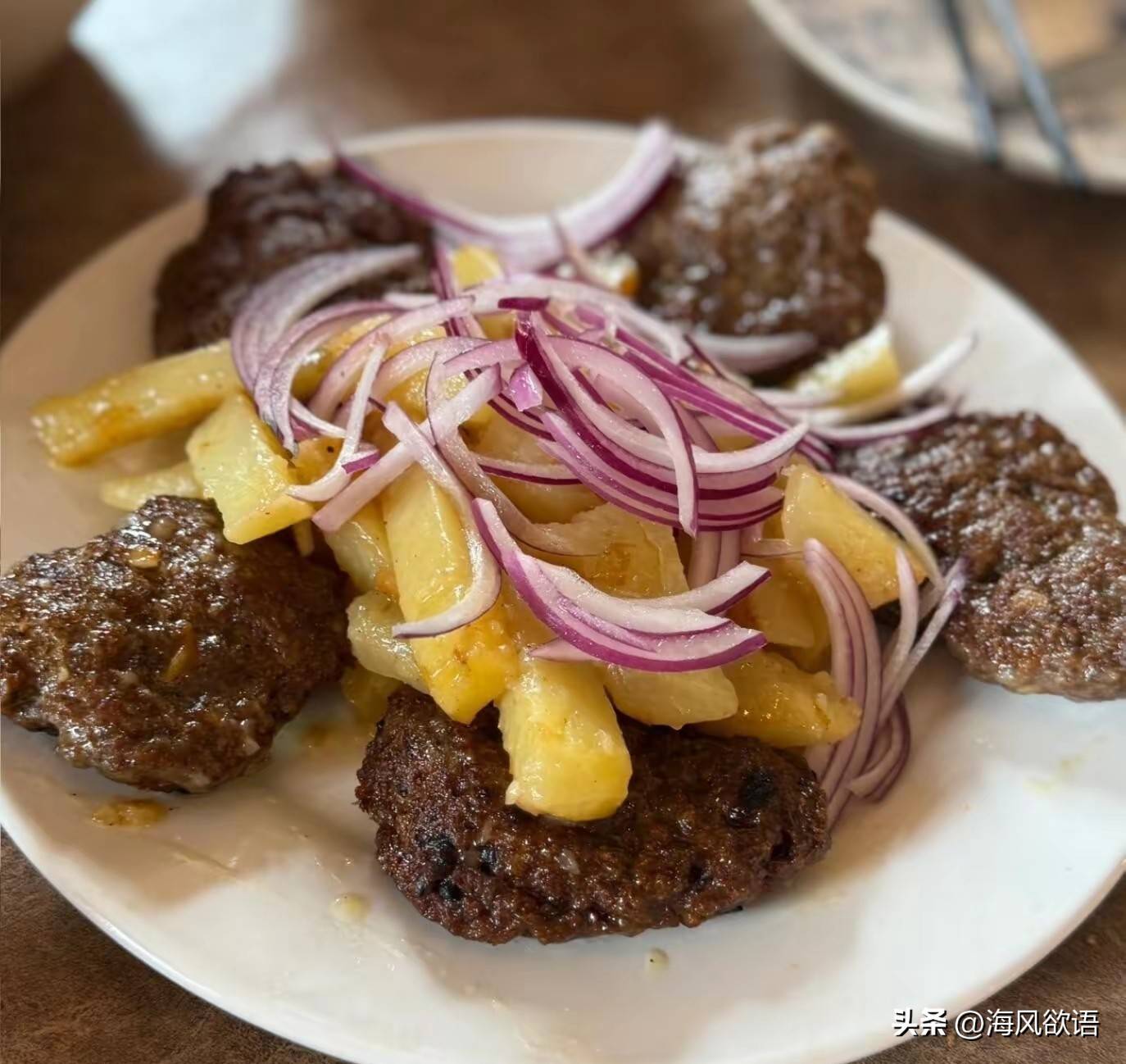 刚出炉的列巴外皮酥脆,抹上自家酿的蓝莓酱,酸甜味儿直钻鼻腔;还有比手掌还大的俄式大串,咬开全是肉汁,配一碗酸中带甜的红菜汤,解腻又开胃。