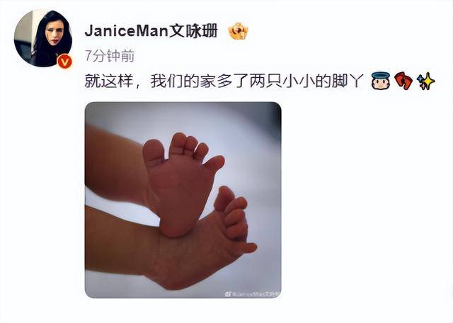恭喜!现年36岁的文咏珊,在今日毫无预警的在其社交平台上,上传了一张小婴儿的小脚照片,宣布当妈喜讯。
