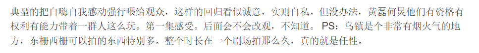 “典型的把自嗨,自我感动强行喂给观众,这样的回归看似诚意,实则自私。”