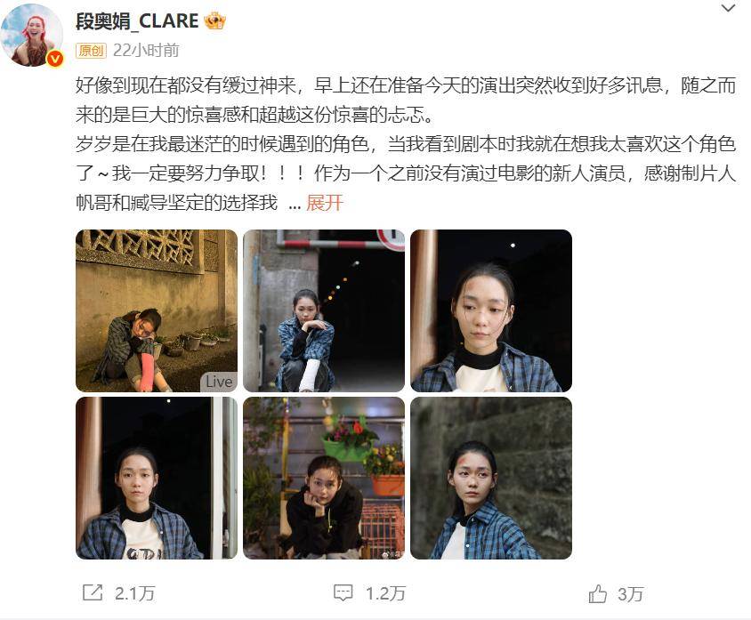 段奥娟获得金鸡奖提名非常开心,9月26日她在个人社交平台发长文:我是多么的幸运呀,遇到了《岁岁平安》和“刘岁岁”。我会一直保持对表演的敬畏之心,好好地对待每一个角色。