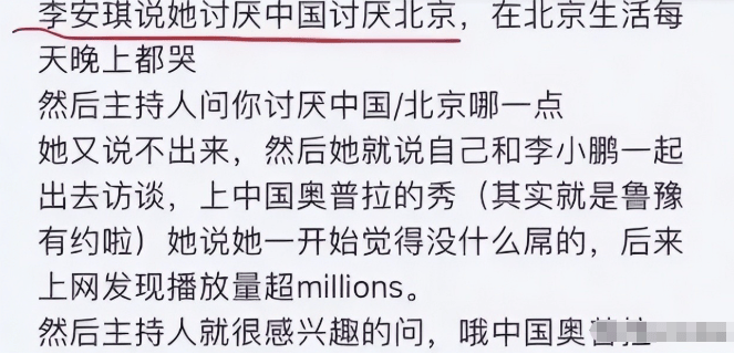 事后,李安琪的社交媒体动态被网友扒出,她曾在多个场合提到对美国生活的赞美。