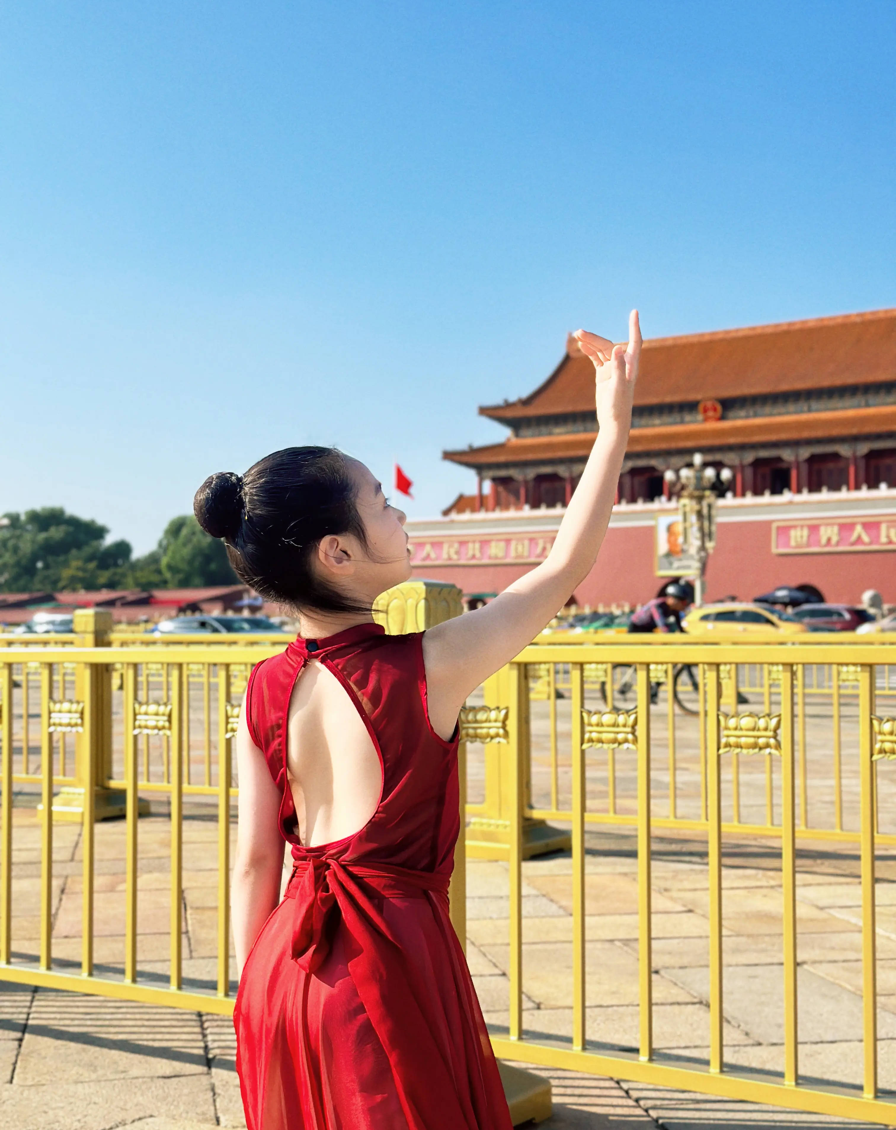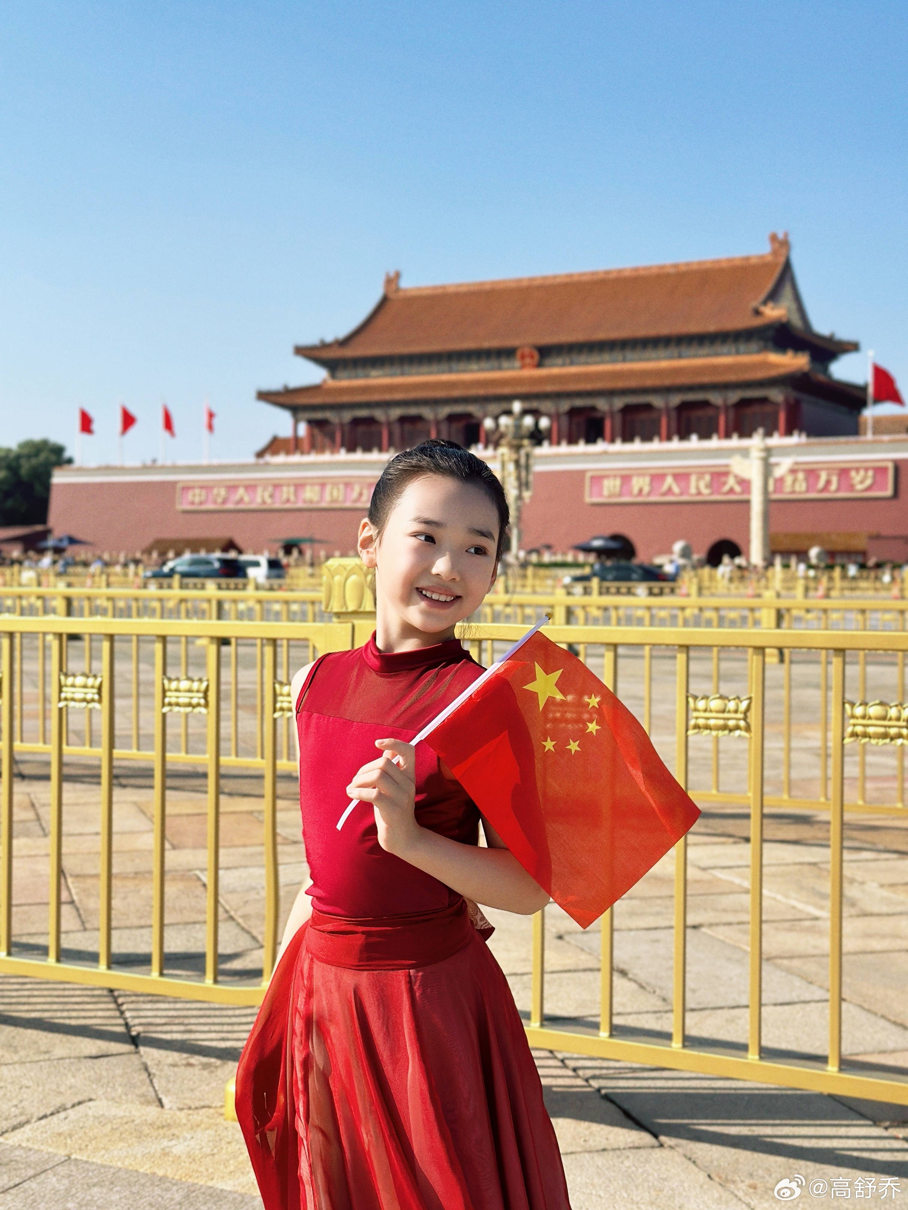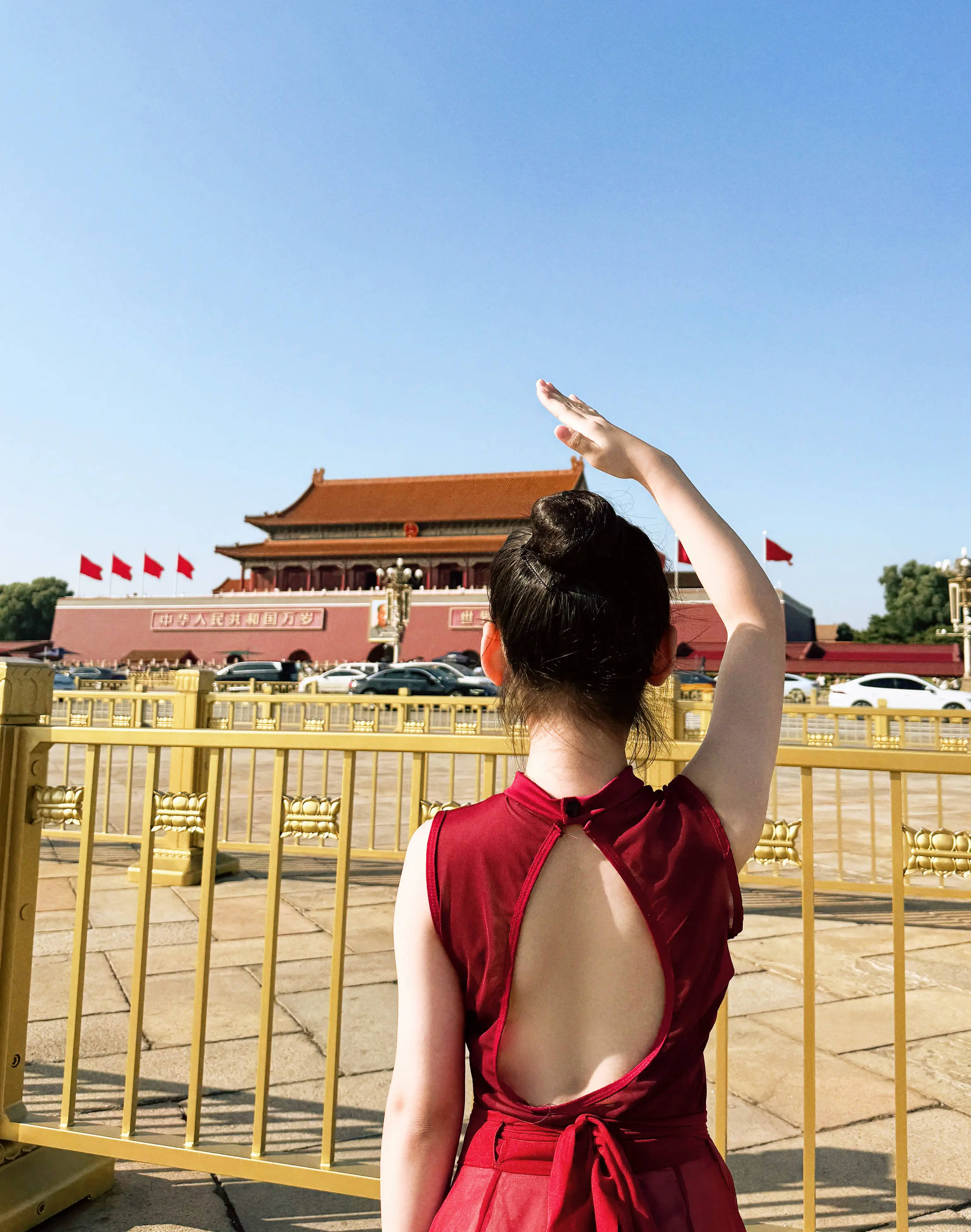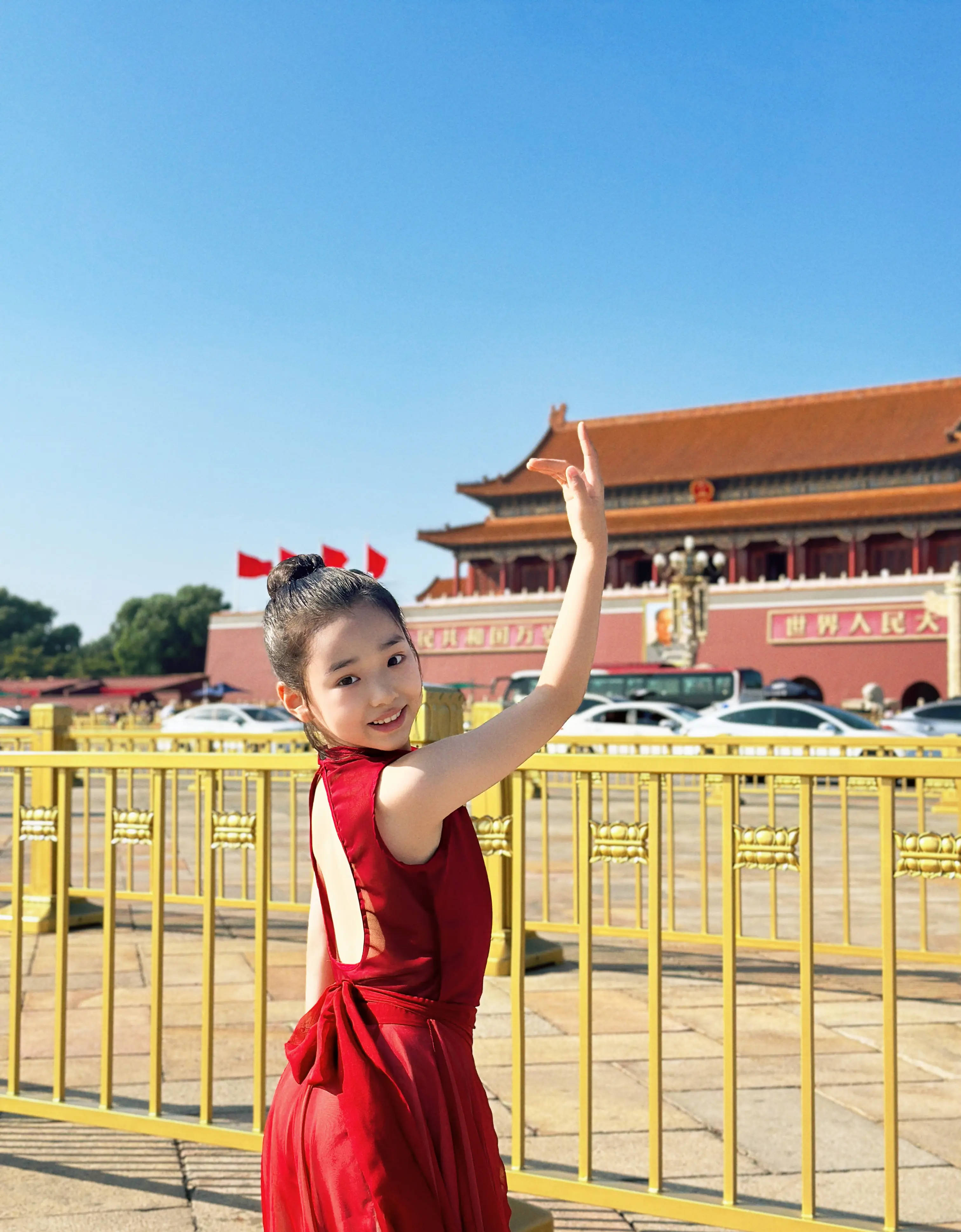 搜狐娱乐讯 10月1日,小酒窝晒出在天安门前拍摄的照片,照片里小酒窝穿着红裙子,笑容明媚,祝福祖国生日快乐。