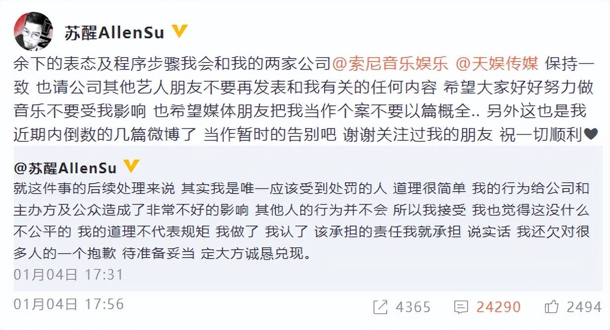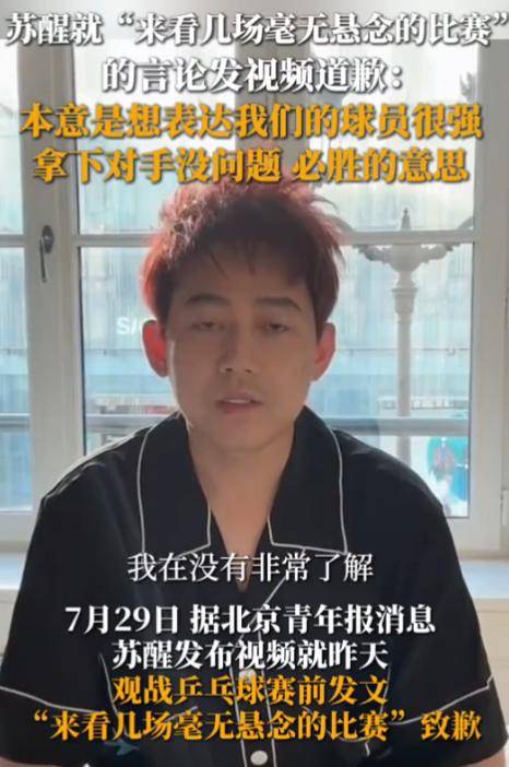 苏醒的这一行为在引发热议后,他自己也感到了不妥,通过视频发出了道歉声明。