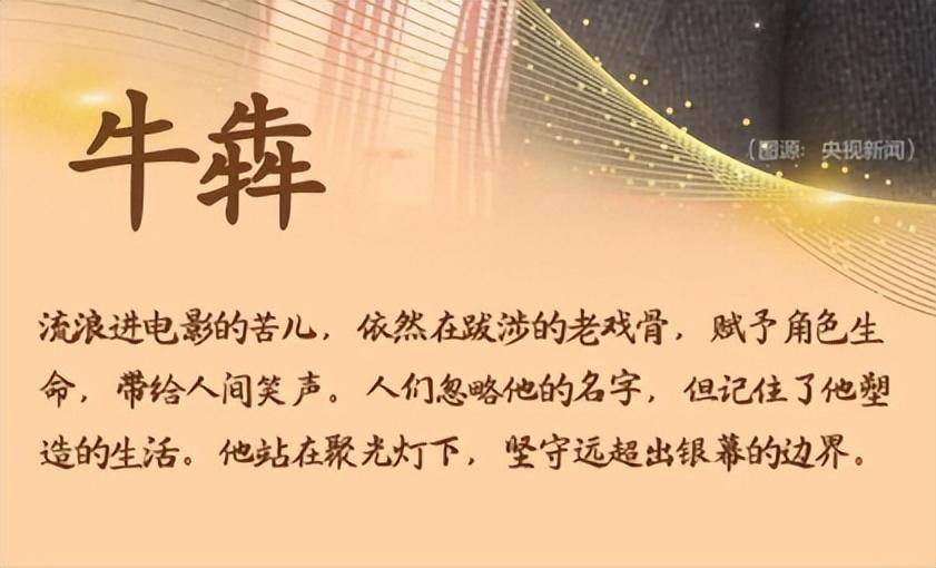 感动中国人物的颁奖词是这样评价牛犇的“流浪进电影的苦儿,依然在跋涉的老戏骨,赋予角色生命,带给人间笑声。