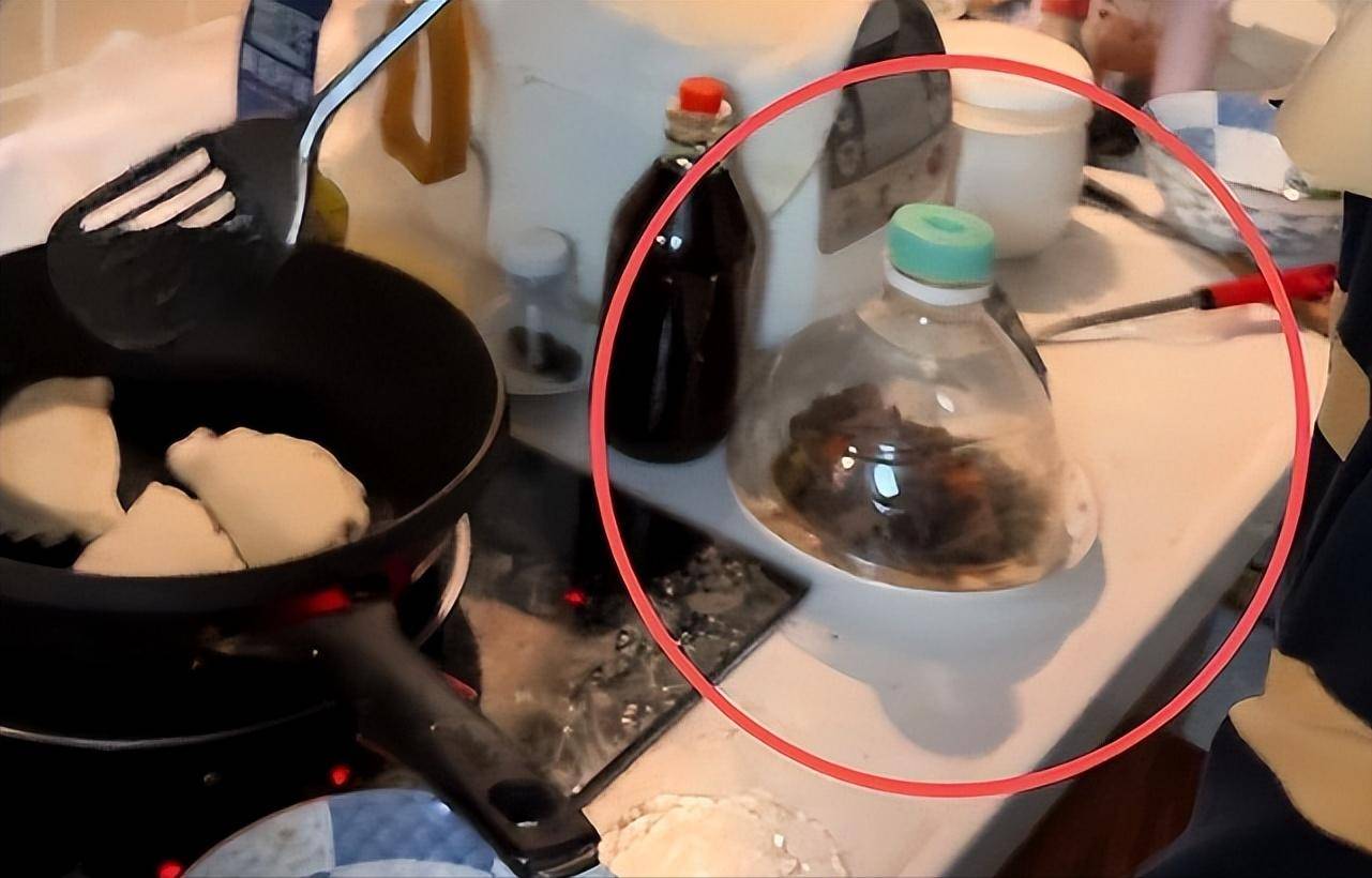 而观看厨房周遭的环境,能看到一盘菜上扣着被剪下来的小半个塑料瓶,应该是为了将菜保温摆放在那里,大家在感叹牛犇巧思的同时不禁也很感慨。