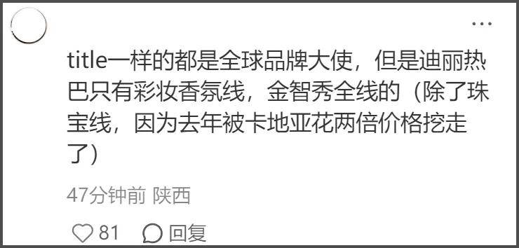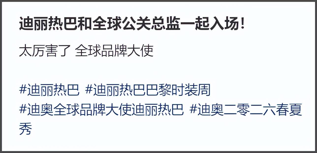 而且品牌的海外官网直到热巴现身秀场,也没有发布热巴的相关物料。只在品牌微博让热巴预热了一下自己要现身秀场,反倒在官网发布了韩星金智秀的物料。同是全球品牌大使的title,怎么还区别对待呢?内场看秀位置似乎也并不是顶级待遇。