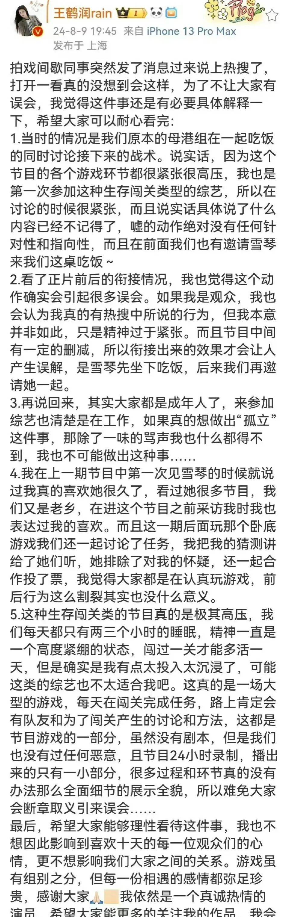 &34第一次参加这种生存闯关类的综艺节目,难免会有些紧张。具体说了什么、做了什么,已经记不太清楚了。但那个&39嘘&39的动作绝对没有任何针对性和指向性。&34