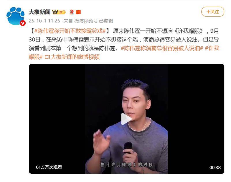在近日的剧集直播中,陈伟霆的一番“不敢拍霸总”的坦言,瞬间引发了全网热议。他直言,面对行业内海量的同类题材剧本,自己的心态已是“不想拍加不敢拍”。这番“危险论”并非空穴来风,他多次强调,高度模式化的霸总角色,从固定的油头造型到夸张的耍帅台词,极易引爆观众的审美疲劳,对演员职业生涯而言“很脆弱”,稍有不慎就会被贴上“油腻”或“做作”的标签。