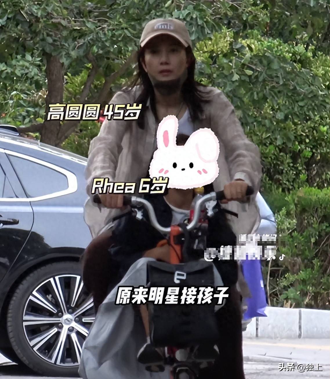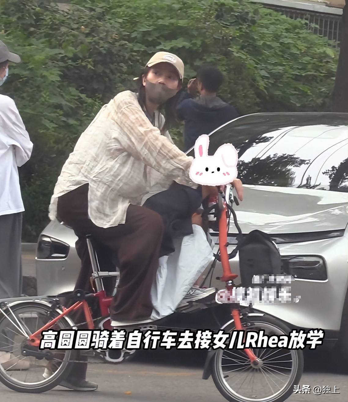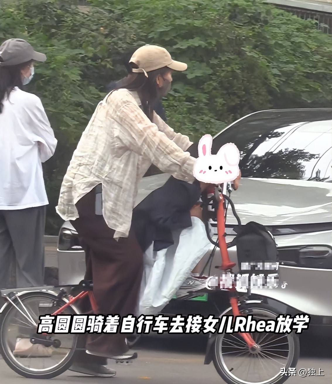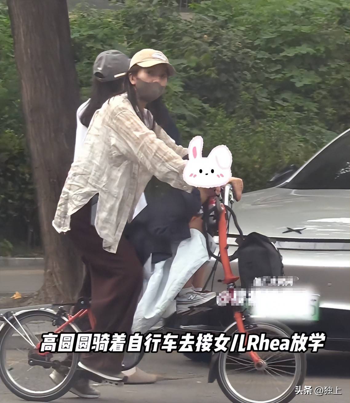 就连女儿放学,高圆圆都亲自去接,她并没有开车去,反而骑了自行车,轮子比较小,地盘很低,相对安全一些。