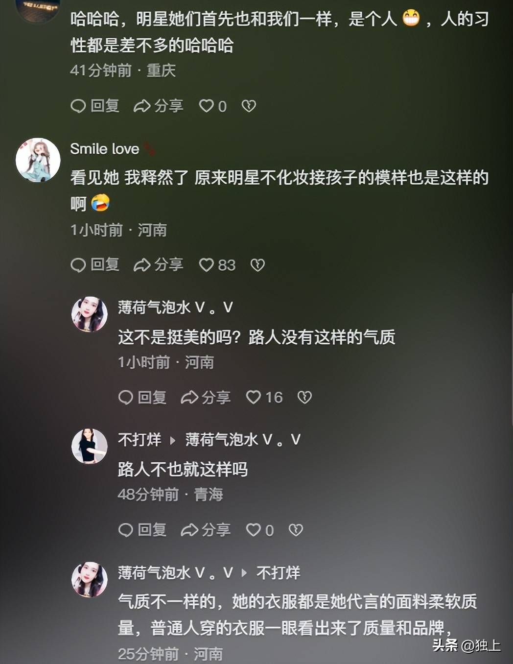 高圆圆出门时大概很着急,看她的衬衫皱巴巴的,还没有来得及熨便出门了,过于随意显得有点不修边幅了,跟大家印象中私下也保持优雅美丽的明星样子完全不同,高圆圆私下就是一个普通女人,一个普通妈妈,没有任何特殊的地方,褪去了明星光环,变得接地气了不少,也刷新了大家对女明星的认知。