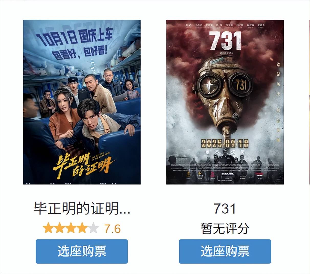 《毕正明的证明》是国庆档新片中豆瓣评分最高的,7.6分,结果票房最惨;另一部至今不敢开分,电影什么样子大家都懂。