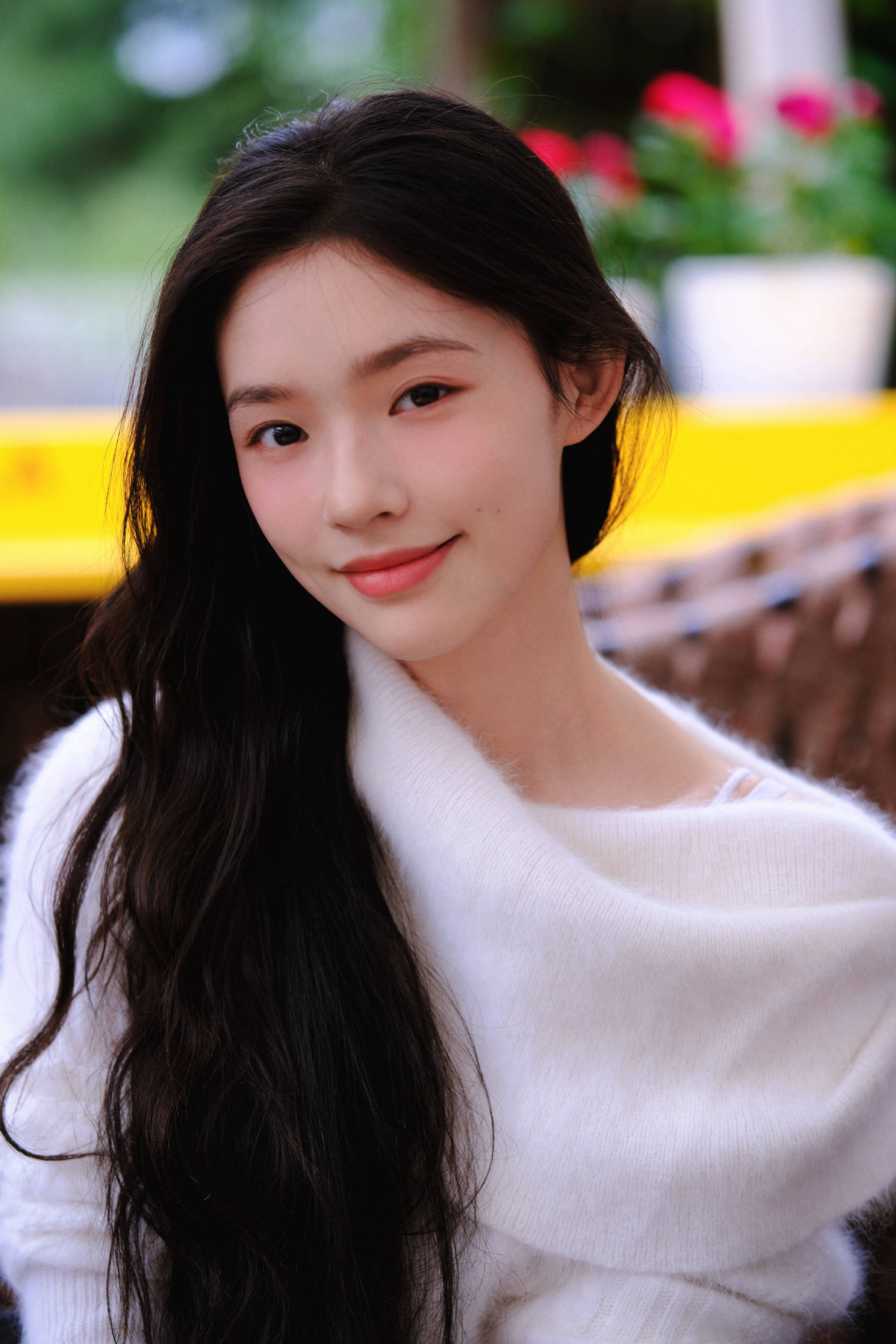 林允穿着白色毛衣拍秋日美照,十分保暖。