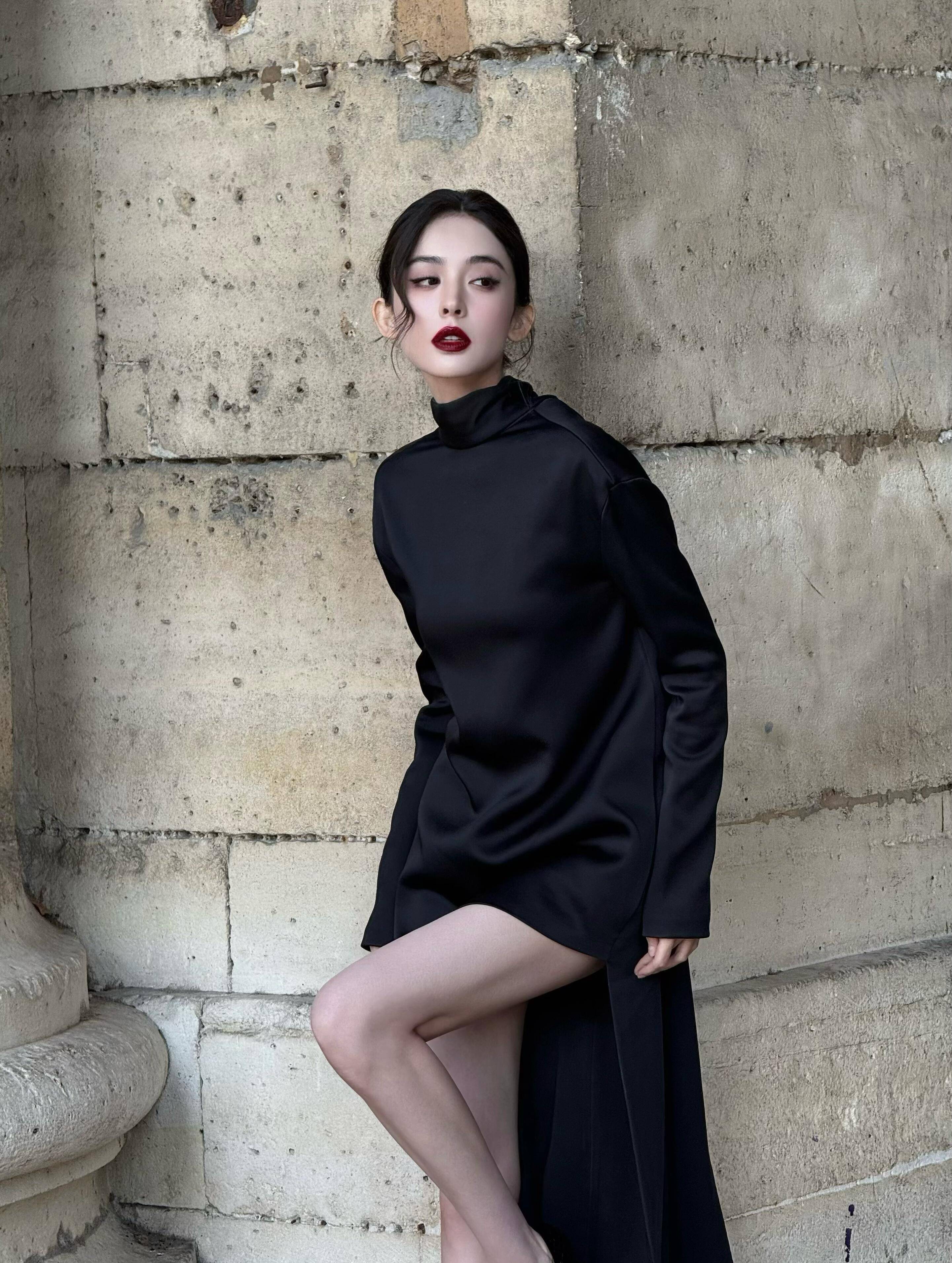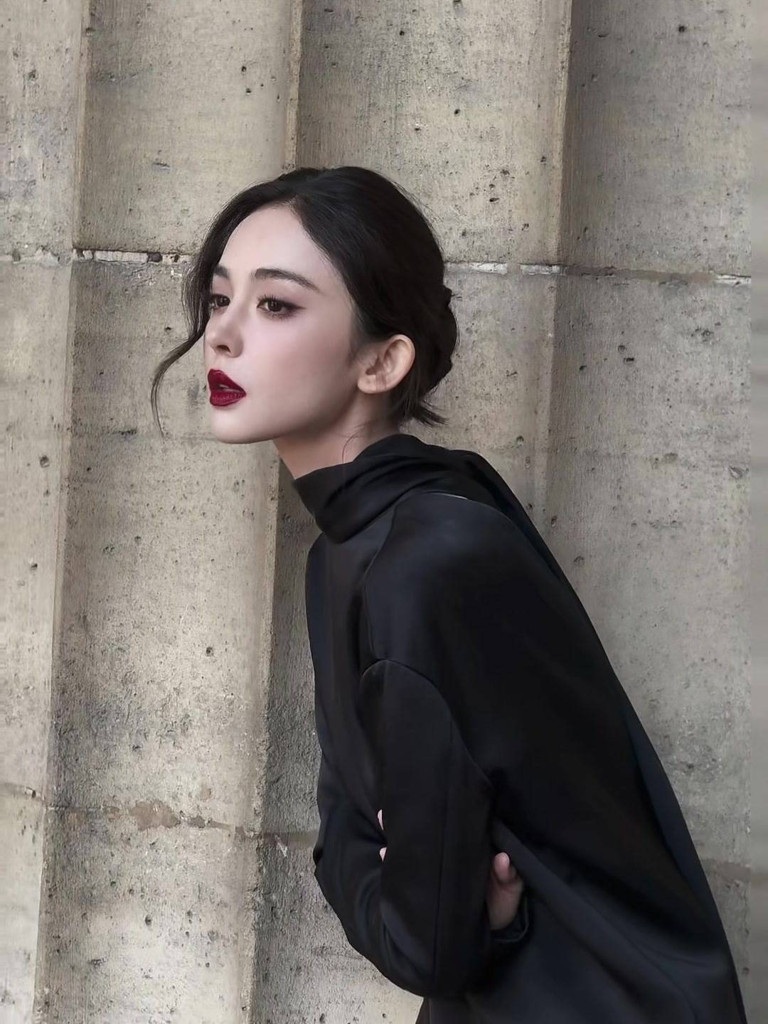 娜扎一席黑裙化身暗黑女王 红唇点缀美得不可方物