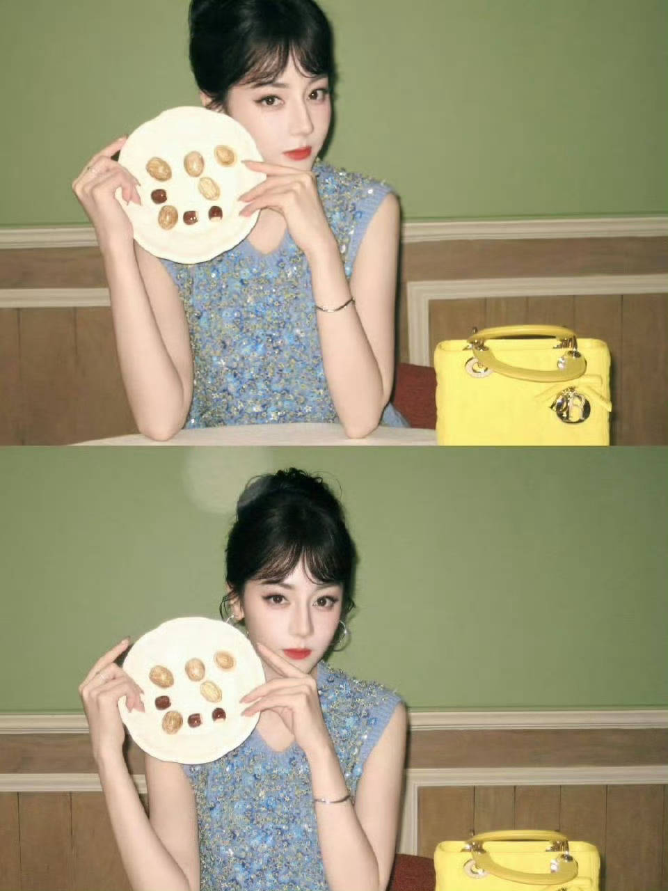 热巴穿蓝色亮片套装好惹眼 嘟嘴卖萌可爱迷人