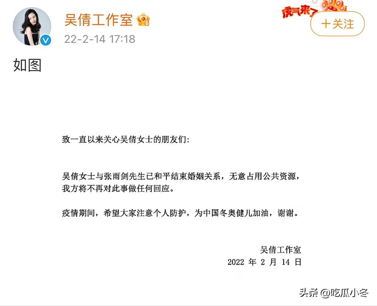 明星离婚在娱乐圈里已不再稀奇,仿佛成了一种普遍现象。有人因为戏剧结缘,却在现实中渐渐失去热情;有人分手让人惋惜,而有人结束婚姻却让大众拍手称快。吴倩与张雨剑的离婚,就属于后一种情况。