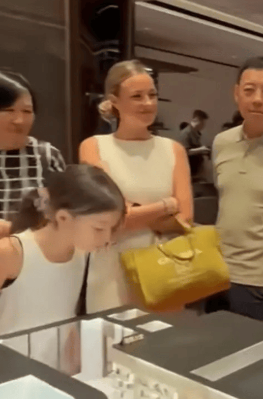 杨其龙老婆和女儿穿了同款连衣裙,金发碧眼的,站在一起就像一对 “颜值姐妹花”,美得让人移不开眼