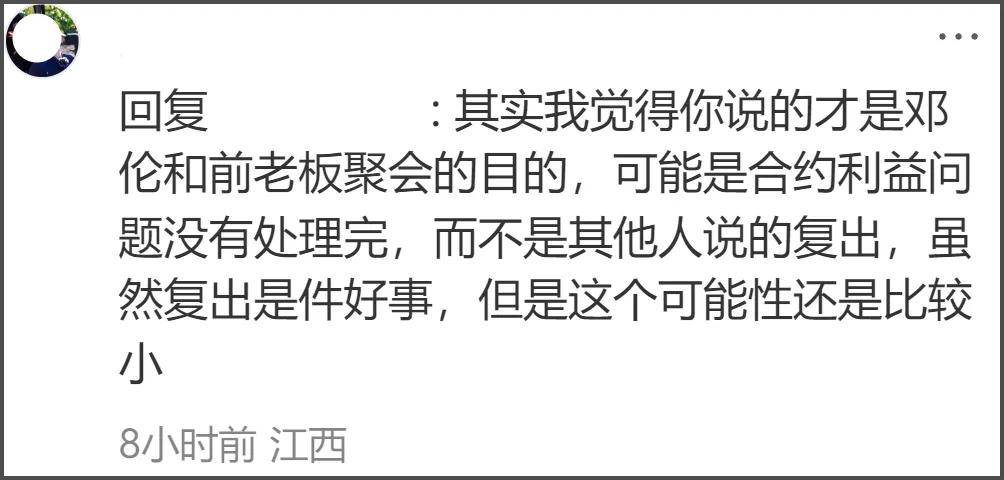 只能说邓伦退圈之后不仅状态变了,也没了底气,更别说什么“星味儿”了。此前还有网友发现公钰涵疑似还想捧出个“邓伦2.0”,但大把资源砸下去也没听见个响,不知道这次约邓伦聚会是不是想“再续前缘”呢?