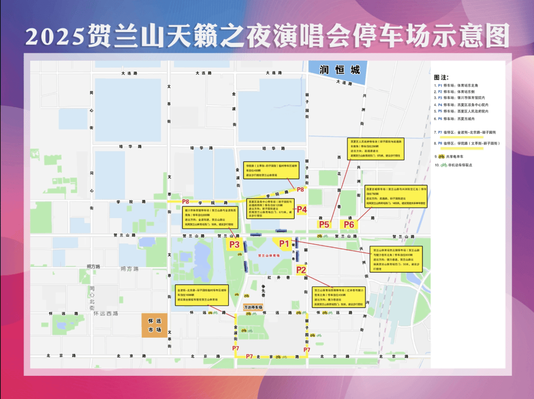 为方便观演群众有序停车,演唱会期间可使用手机“扫一扫”停车二维码,实时了解贺兰山体育场周边停车场停车地点和停车泊位相关情况,精准导航、提前规划、择路通行。
