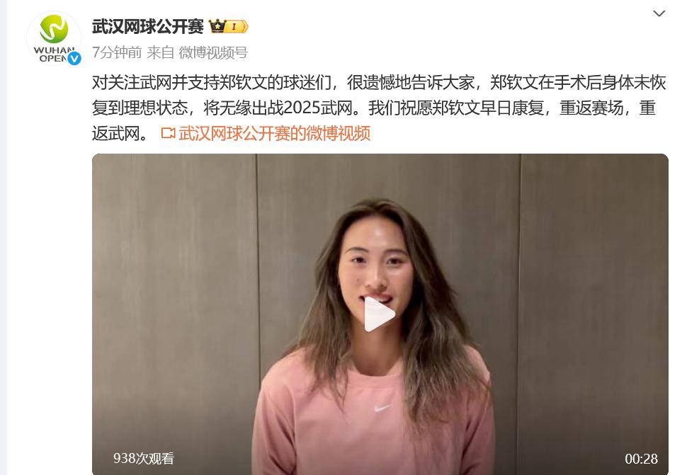在随后的视频中,郑钦文解释了自己的退赛原因:“我的身体情况尚未恢复到最佳状态。在咨询医生以及与团队讨论后,我很遗憾地决定退出今年的武网。”她还表示:“期待明年武网再相聚。”