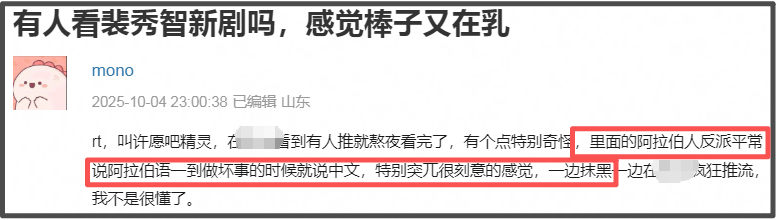原创 裴秀智新剧又辱华!阿拉伯反派一做坏事就说中文,营销号捂嘴删评