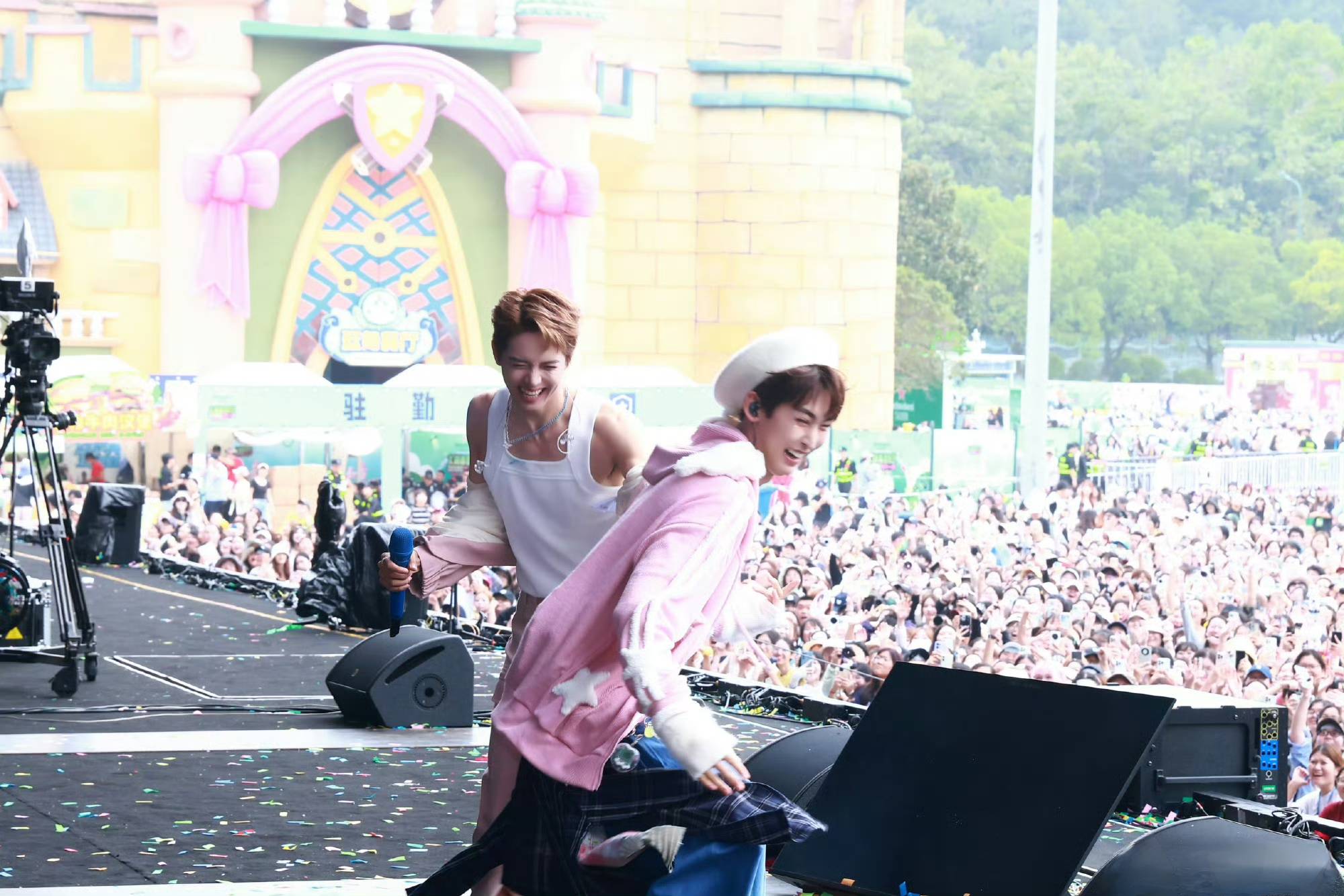 据现场观众透露,事发前周峻纬正调侃好友唐九洲“总在综艺里坑我”,不料话音未落,唐九洲便从侧台飞奔而来。虎扑社区网友爆料,唐九洲行动前特意向工作人员确认周峻纬“未穿垫肩”,避免造成服装事故。这对因《名侦探学院》走红的“互坑兄弟”,早就在节目中积累无数名场面——从互抢麦克风到用玩具蛇恶作剧,此次音乐节“扒衣”事件,实则是两人默契的“综艺效果”延续。
