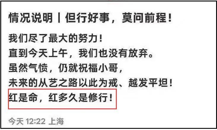 当时这位工作人员也透露,已经和田栩宁在接洽当中,争取不会让粉丝失望。一时间,网友开始声讨田栩宁,认为他还没红多久就飘了,应该抵制。就连工作人员也内涵:“红是命,红多久是修行!”可见对艺人临时取消合作,非常不满。