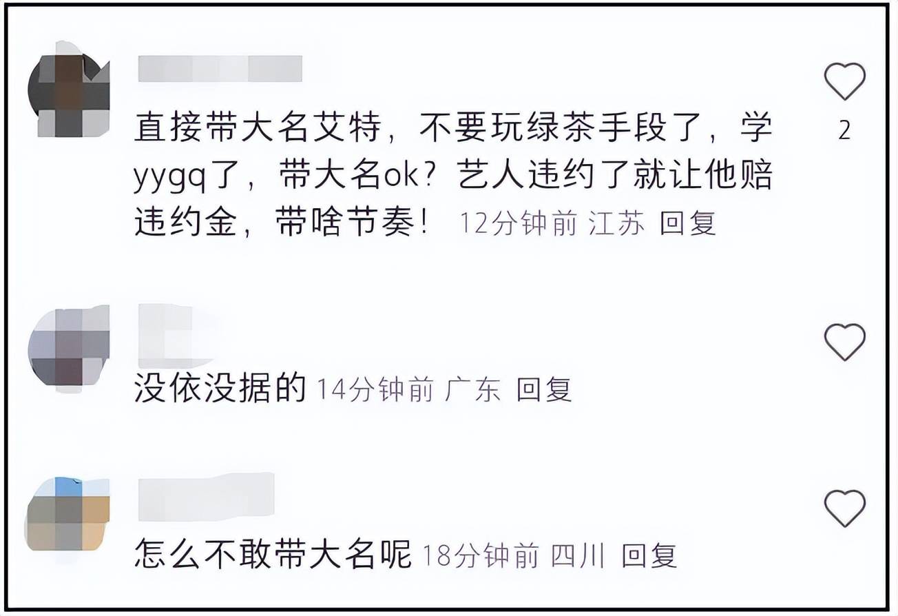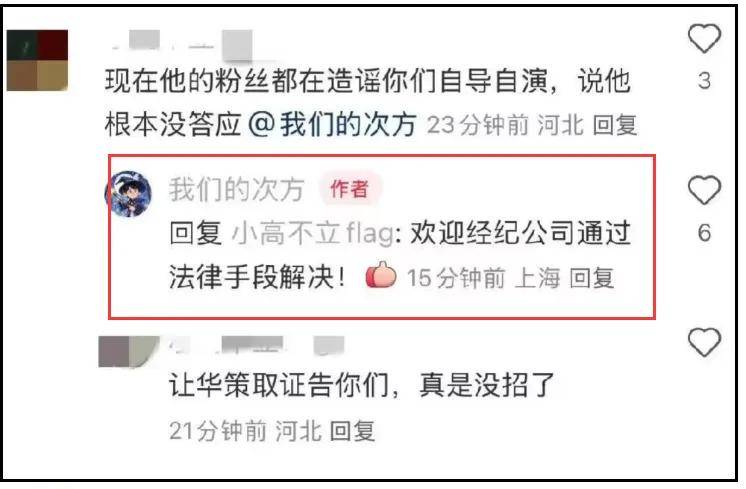 舆论发酵后,引起田栩宁粉丝极大不满,不少人开始到这位工作人员的平台下留言,让对方不要玩“绿茶手段”带节奏,是事实就大方带名字。还有吃瓜网友提醒工作人员注意,称田栩宁所属经纪公司准备提告了。但对方显然很有底气,直接回复:“欢迎经纪公司通过法律手段解决!”