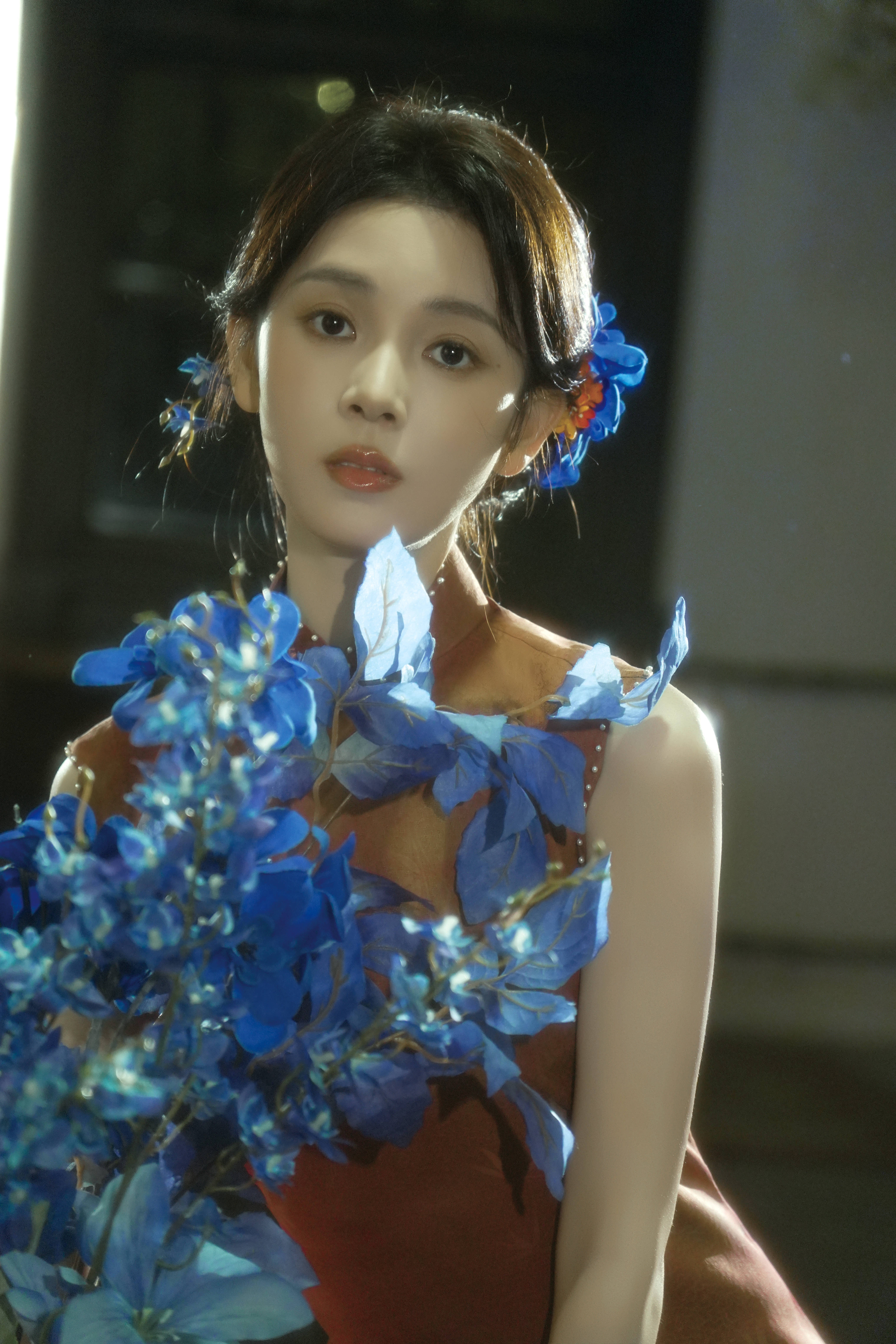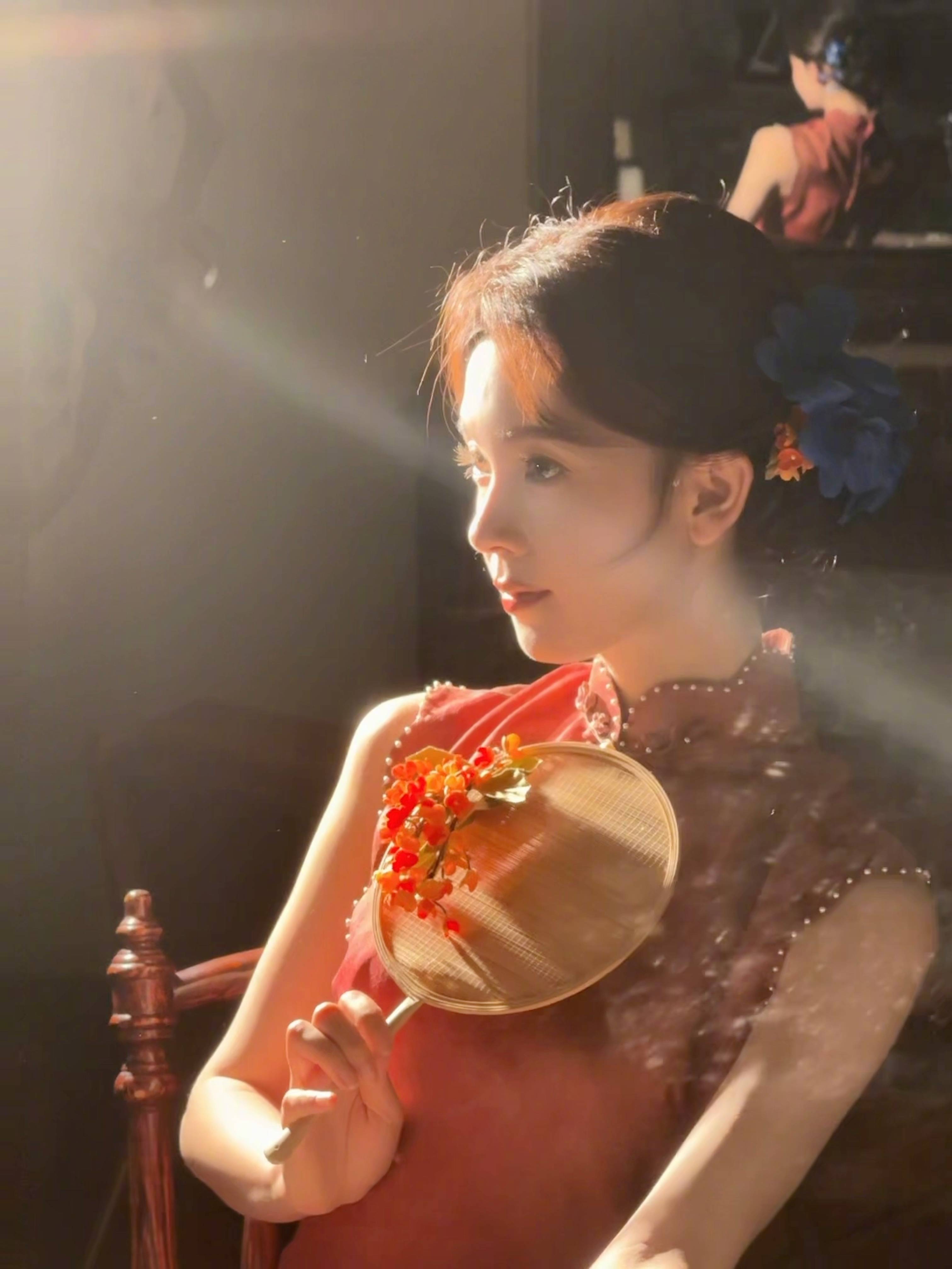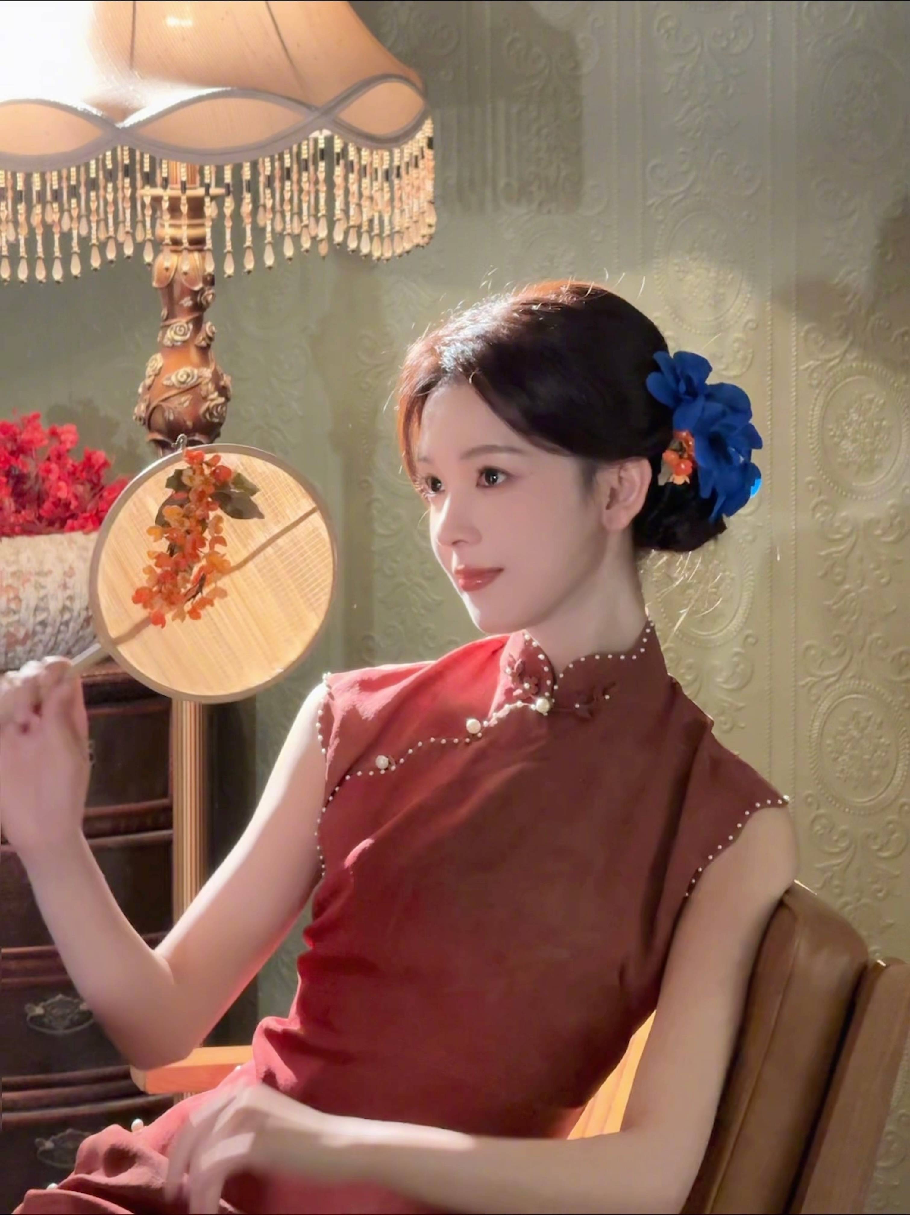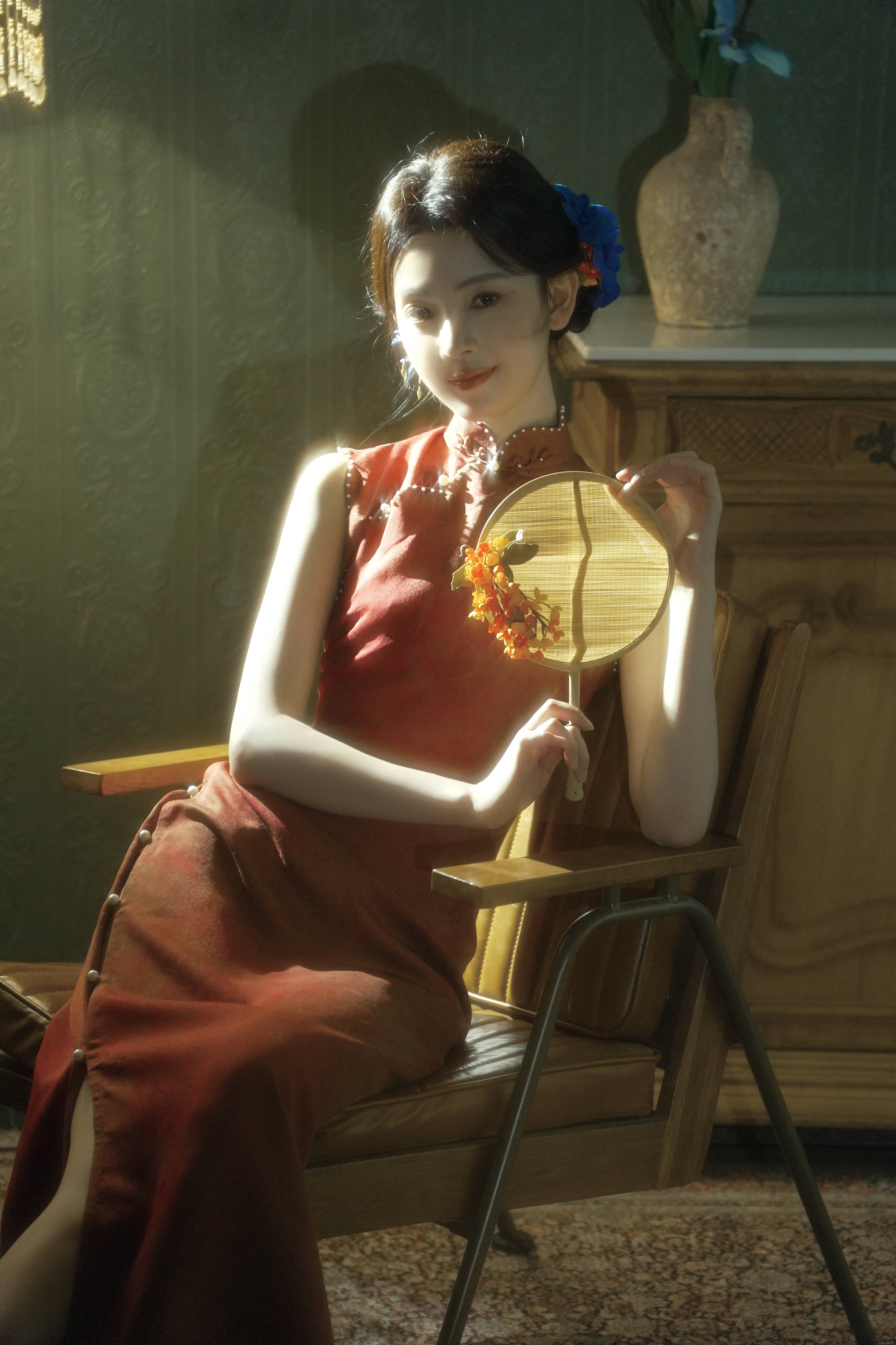 搜狐娱乐讯 10月6日,陈瑶在社交平台分享了自己的中秋照片,照片里的她穿着红色旗袍,手拿精致团扇,怀抱蓝色鸢尾花,古韵十足。