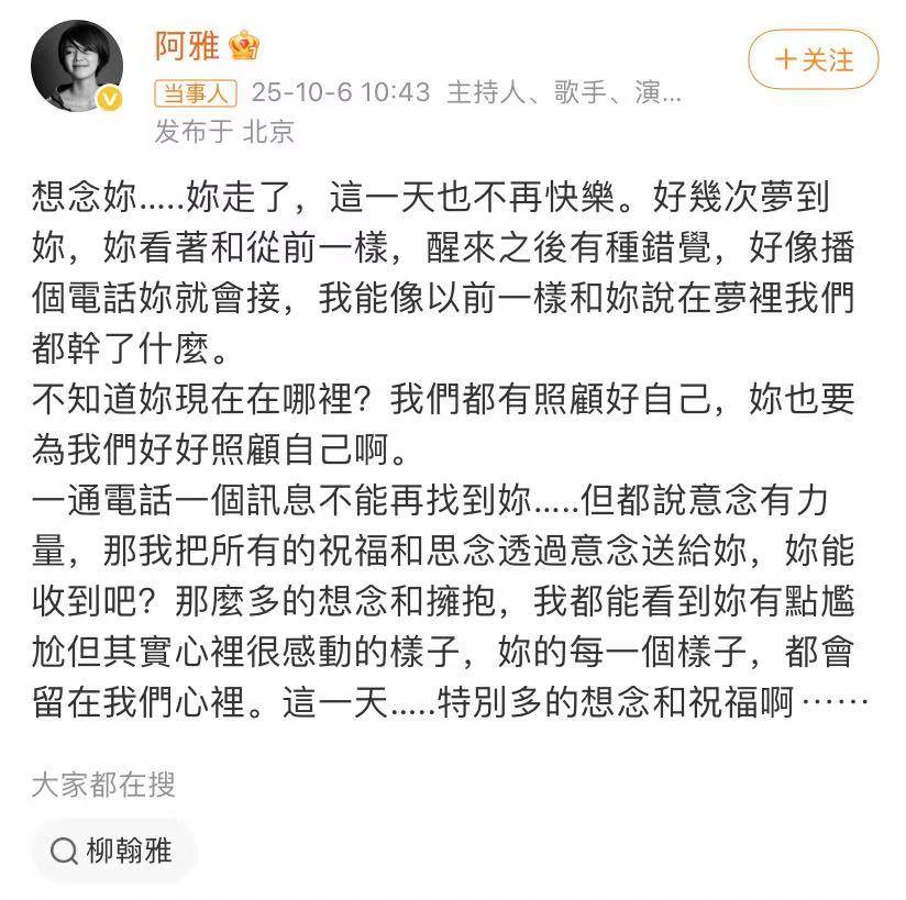 大S下葬之前,小S也号召姐妹们发文悼念姐姐,阿雅当时也写了,并且发出来了。