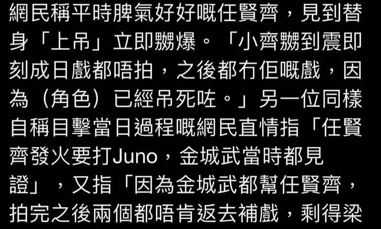 最后还是要强调一下,关于替身进医院和任贤齐、导演矛盾一事,都是港媒爆料,还没有实锤。