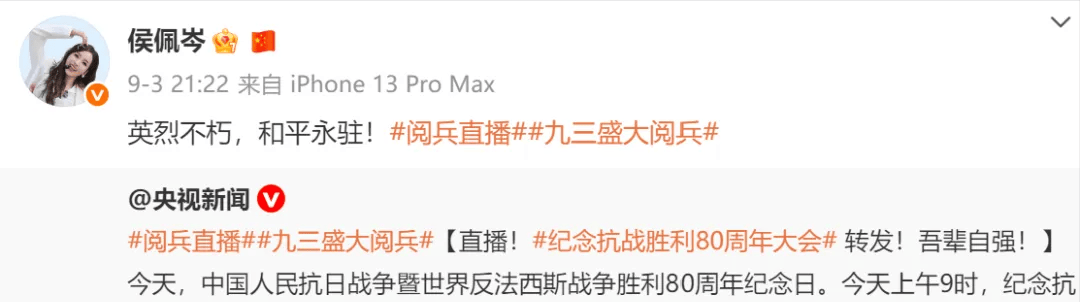 历经12年,侯佩岑又重新站在央视秋晚的舞台上,这与她正确的立场表态紧密相关。侯佩岑婚后事业发展重点全面转移到娱乐方向,在内地接到的工作也都是娱乐节目嘉宾,而不是大型晚会的主持人。近两年,每逢表态“台湾是中国的一个省”等重要时刻,台湾省出身的侯佩岑从未缺席,即便因为表态遭到台媒攻击骚扰,侯佩岑也立场坚定。在今年盛大的93阅兵日,她也积极转发表态,致敬伟大的先辈。