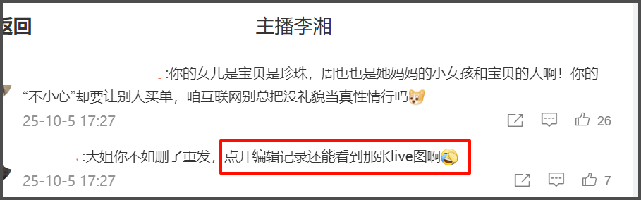 后续李湘上线删除了live图的博文,把后面发布的王诗龄的采访视频也删了,然后又重新编辑放出,把动态图变成静态。但并未对此前live图事件做出解释,甚至编辑记录仍然还能看到,随后更是限制网友转发评论,这波操作也是令人无语。