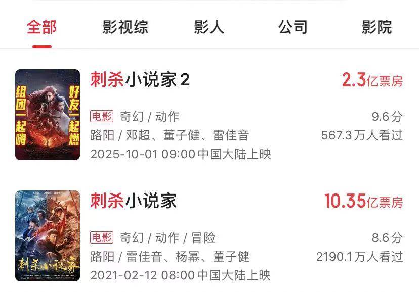 上映了5天,《刺杀小说家2》票房才2.3亿元,最后两天也达不到5亿,可能还是在3亿左右徘徊。第一部票房10.35亿元,估计也没赚多少。第二部要想保本和盈利,会很难。