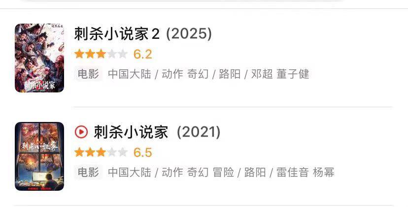 《刺杀小说家》第一部豆瓣6.5分,票房破10亿。