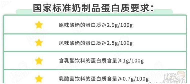 按国家规定,正经的发酵乳每100克蛋白质不能低于2.9克,风味发酵乳也得达到2.3克。