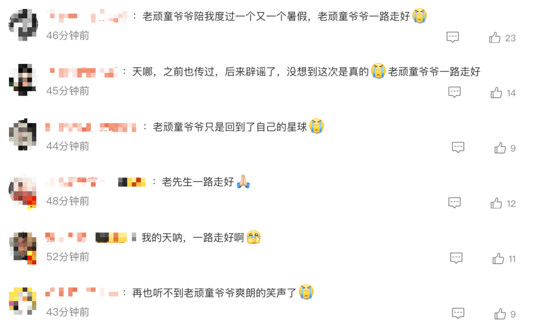 网友:老顽童爷爷陪我度过了一个又一个暑假,一路走好……