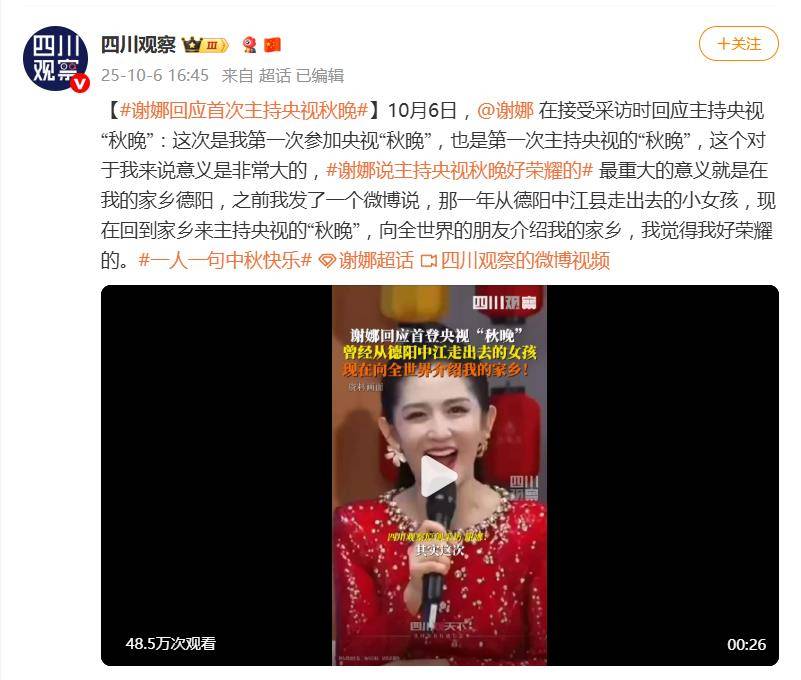 不过,这场“跨界”并非全是掌声。有观众指出谢娜“看提词器明显”“采访中口头禅过多”,认为其台词功底仍与专业央视主持有差距。但更多声音肯定了她“零失误”的现场掌控力,网友直言:“能在娱乐与庄重间自如切换,本就是稀缺能力。”