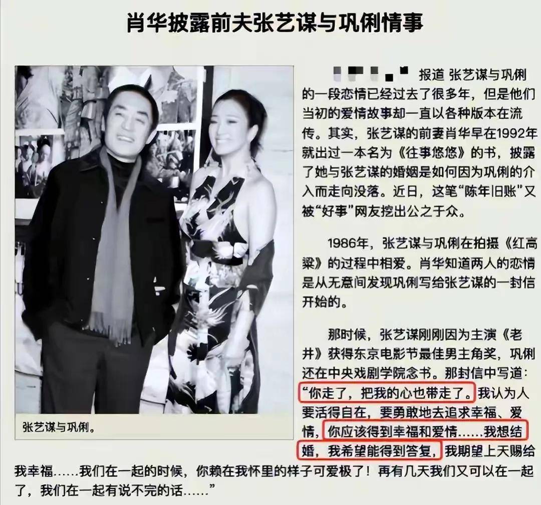 讲述了她与张艺谋,巩俐三人之间的关系,她的家庭,如何从幸福走向崩盘的?