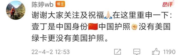 陈婷只有在微博澄清,儿子没有美国绿卡,也没有护照。