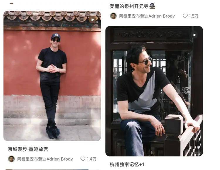 除了拍戏,阿德里安・布劳迪还经常来中国旅游,体验中国的风土人情 。