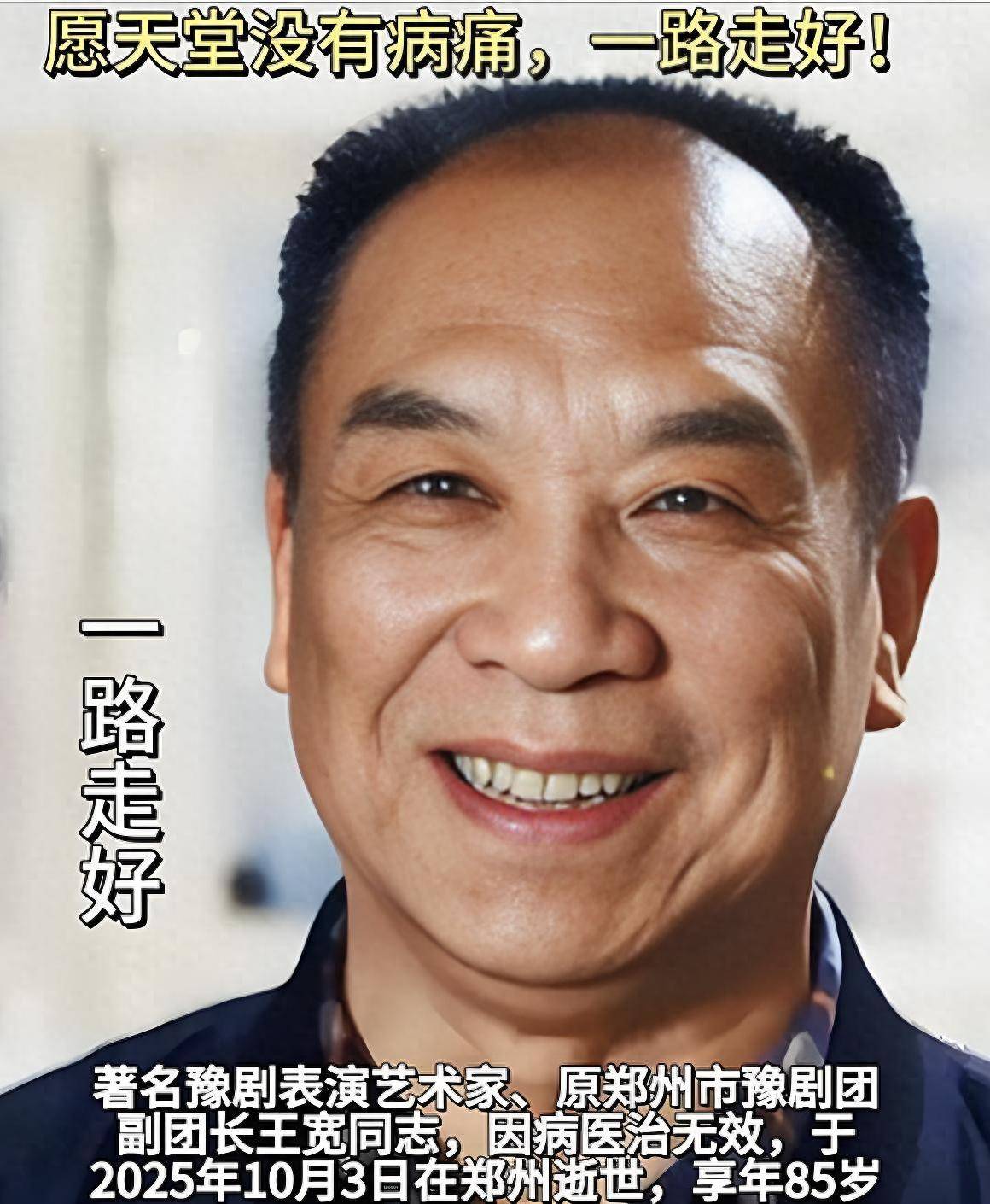 2025年10月3日10时20分,著名豫剧表演艺术家王宽,不幸在郑州病逝,享年85岁。