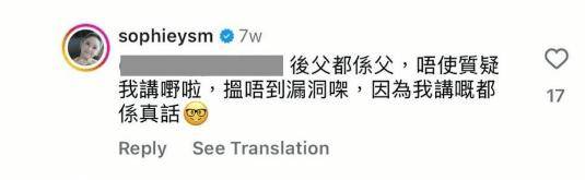 之后叶蒨文亲自回复该网友:“继父也是父亲,不用质疑我说的话,你是找不出漏洞的,因为我讲的全都是真话。”