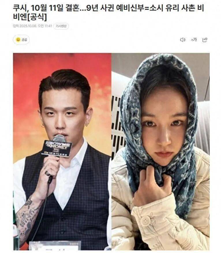 据韩国媒体10月8日报道,经纪公司The Black Label官方公告,41岁的Kush与32岁的薇薇安将于10月11日举行婚礼。消息一出,粉丝们纷纷感慨:"原来真有人能把职场恋情谈成偶像剧!"