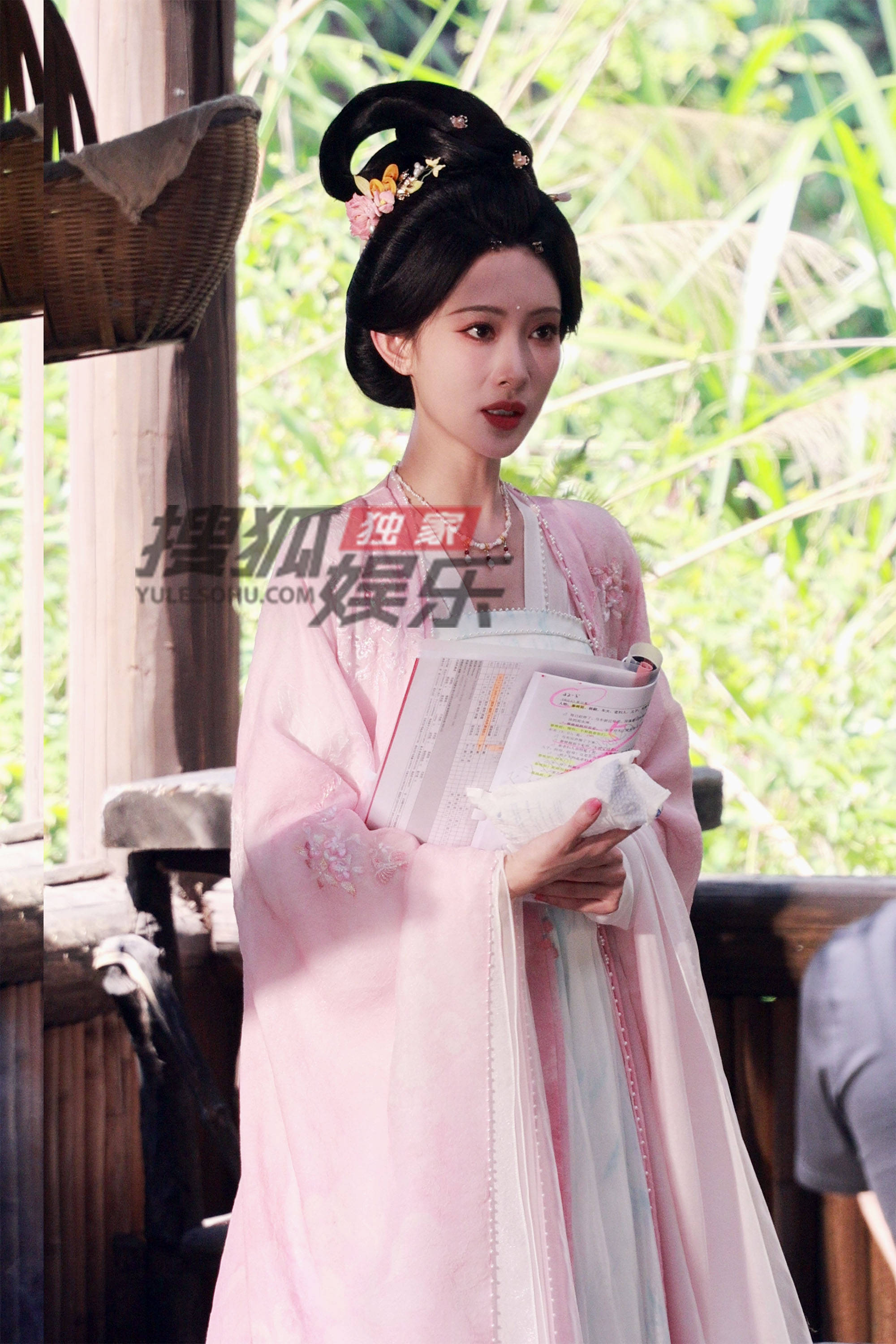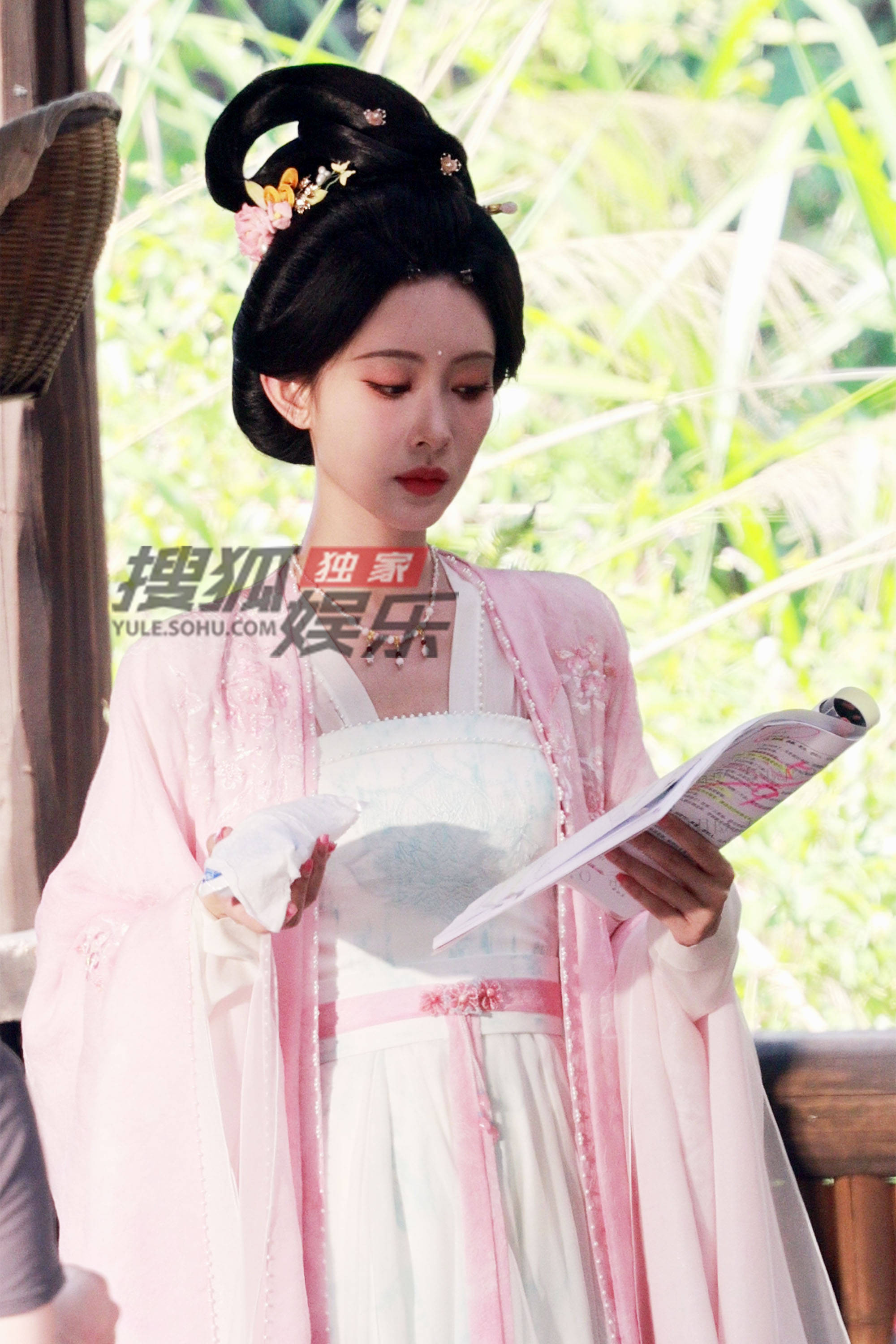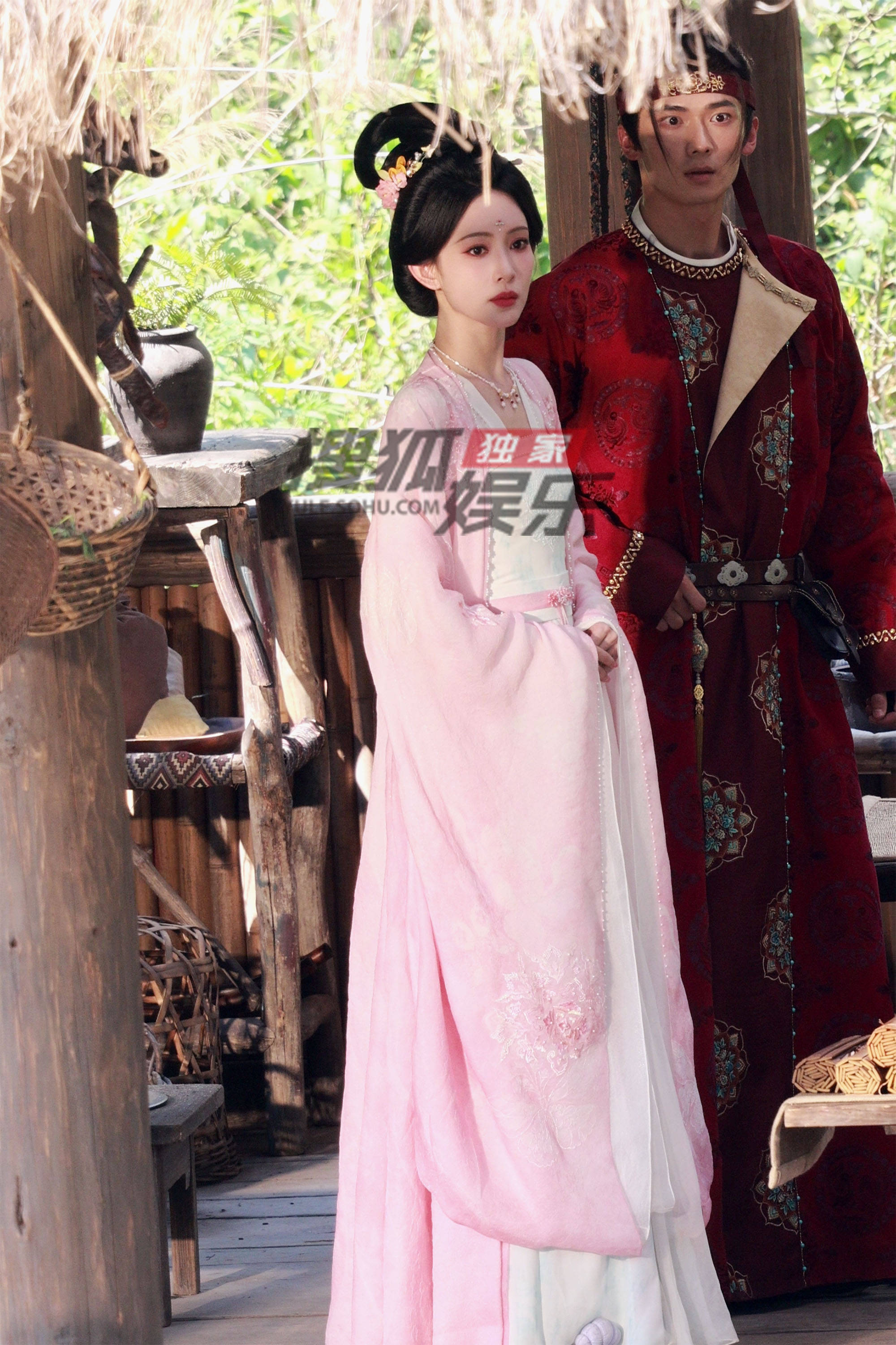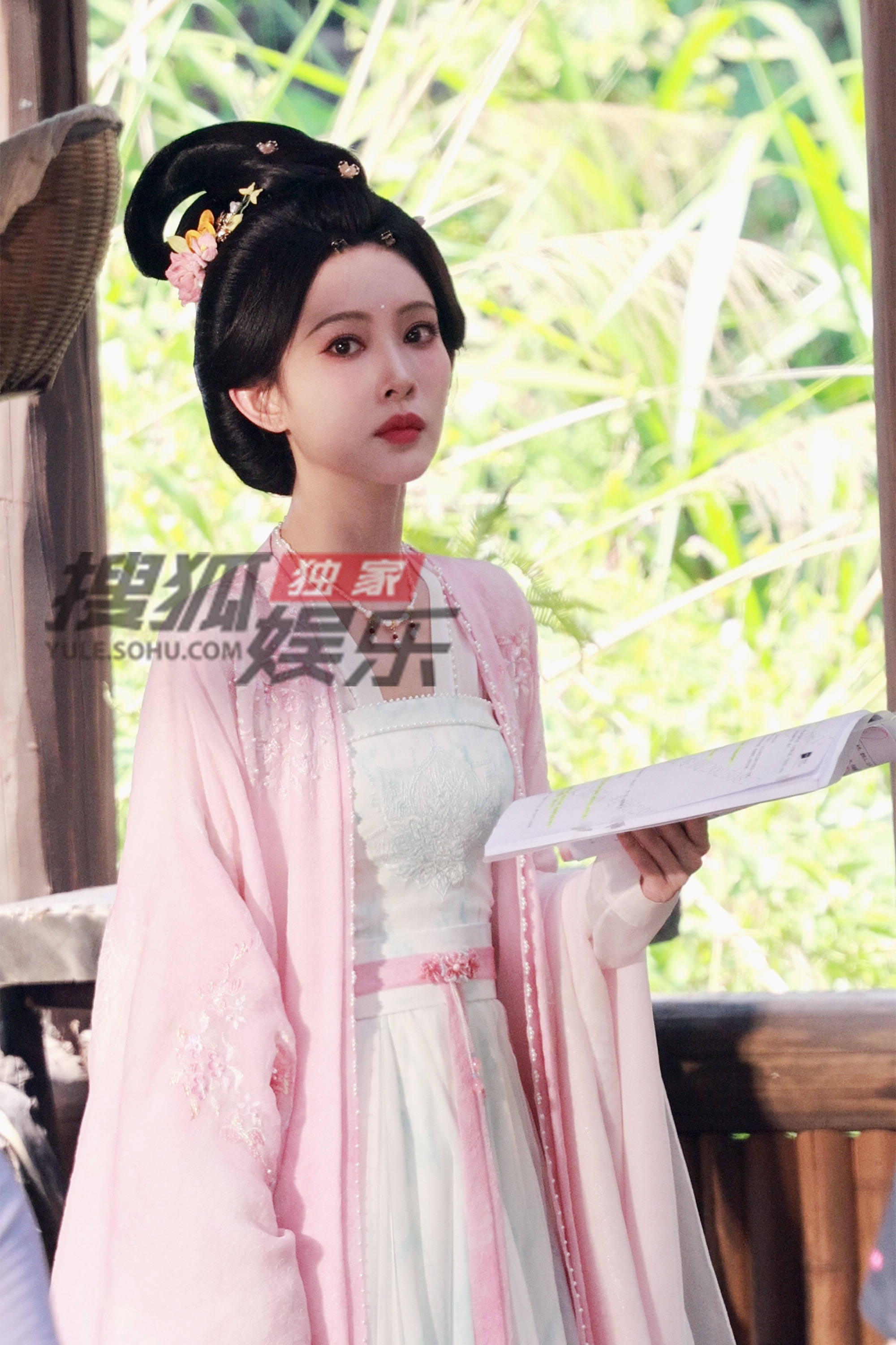 搜狐娱乐讯(洪水工作室/图文)近日,孟子义《尚公主》片场拍摄。她头戴粉色花钗,一身粉色戏服,脸蛋儿也是白里透粉,看着真的好柔和梦幻。
