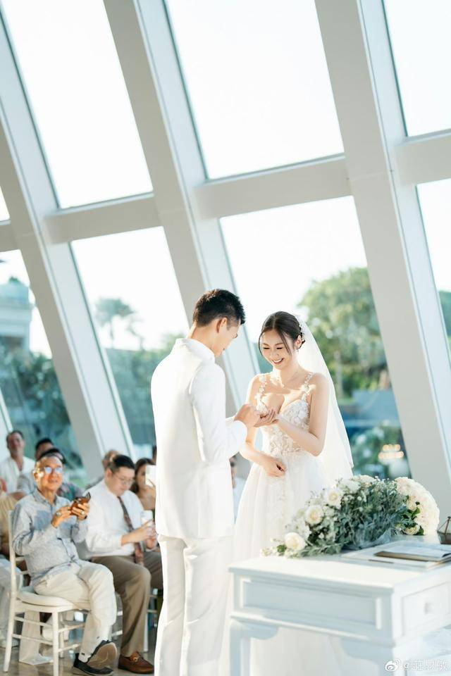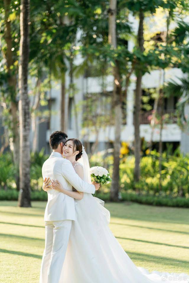 婚礼顺利完成后,庄思敏也是大方分享了婚礼现场的照片,看得出当时一对新人在巴厘岛全程都洋溢着幸福,作为新娘的庄思敏穿着一袭洁白的婚纱,她身材保持的相当不错,腰线突出,四寸事业线尤为抢镜。