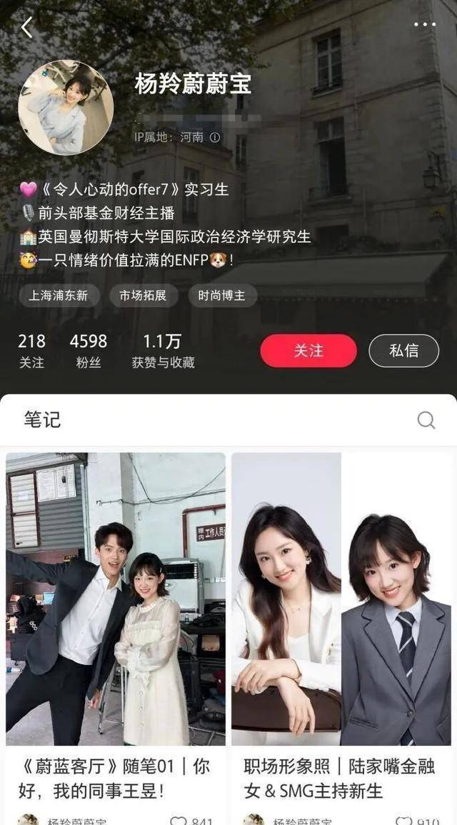 随着节目播出,杨羚蔚真的从交银施罗德离职了。基金业协会查无此人了,小红书简介也改成了“前头部基金财经主播”。