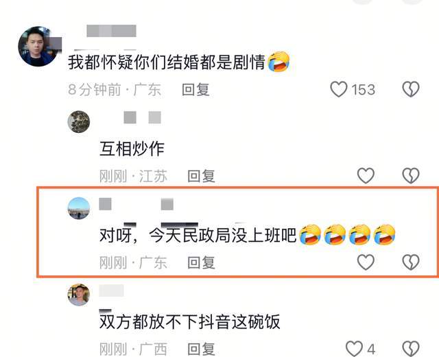 有人说,两人从结婚到离婚都是剧本,且时间对不上,民政局没有上班。