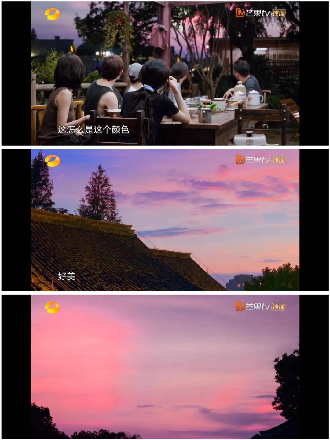 巧妙的是,大家热泪盈眶的时候,这时辛芷蕾望向天空,喊大家快抬头去看,原来今天的晚霞很美,戏剧里的感动和生活里的浪漫此起彼伏,把这次围炉夜话升华到了一种神奇的“贤者时间”。
