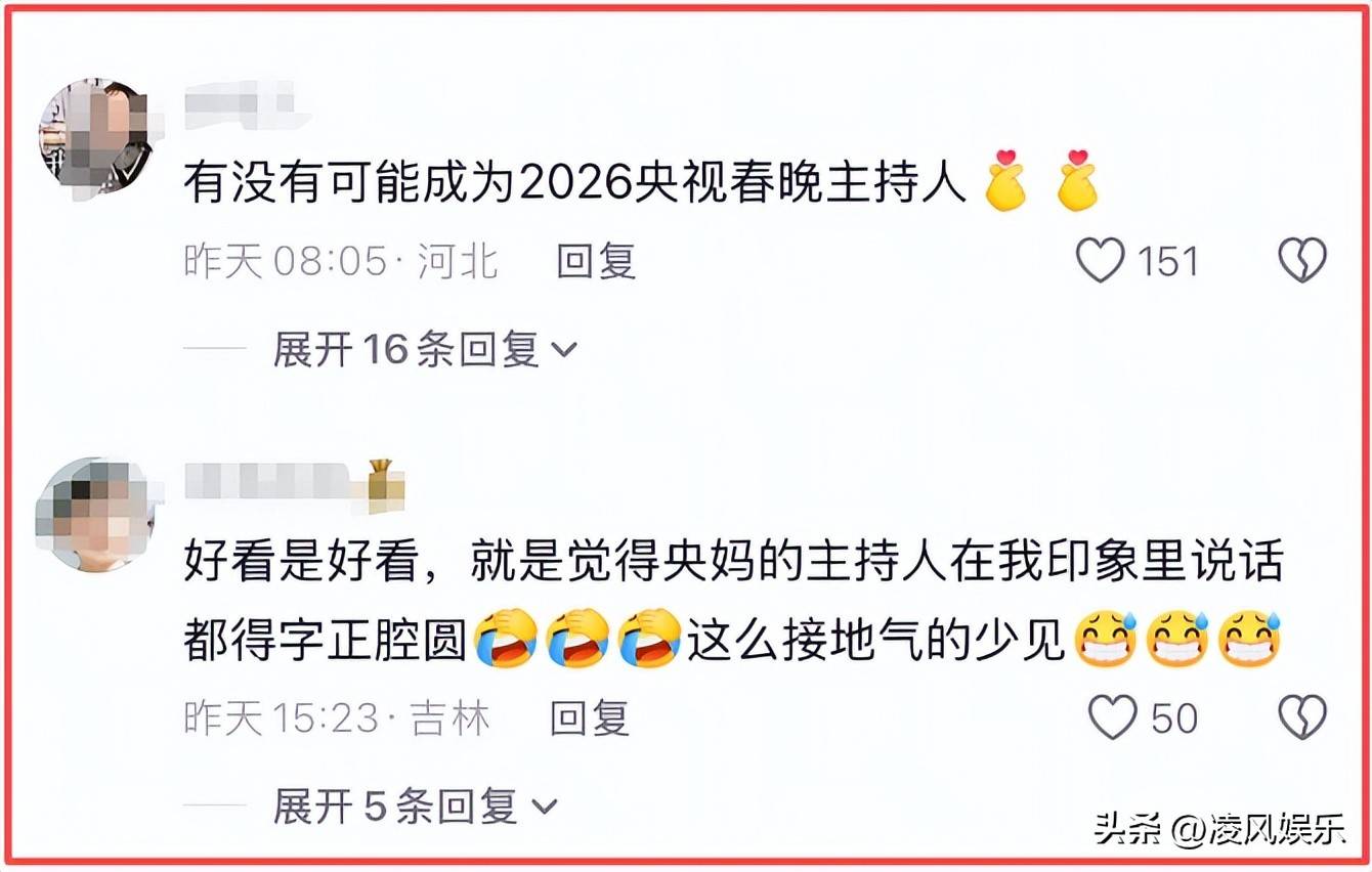 甚至还有人在评论里问:“有没有可能成为央视春晚的主持人?”