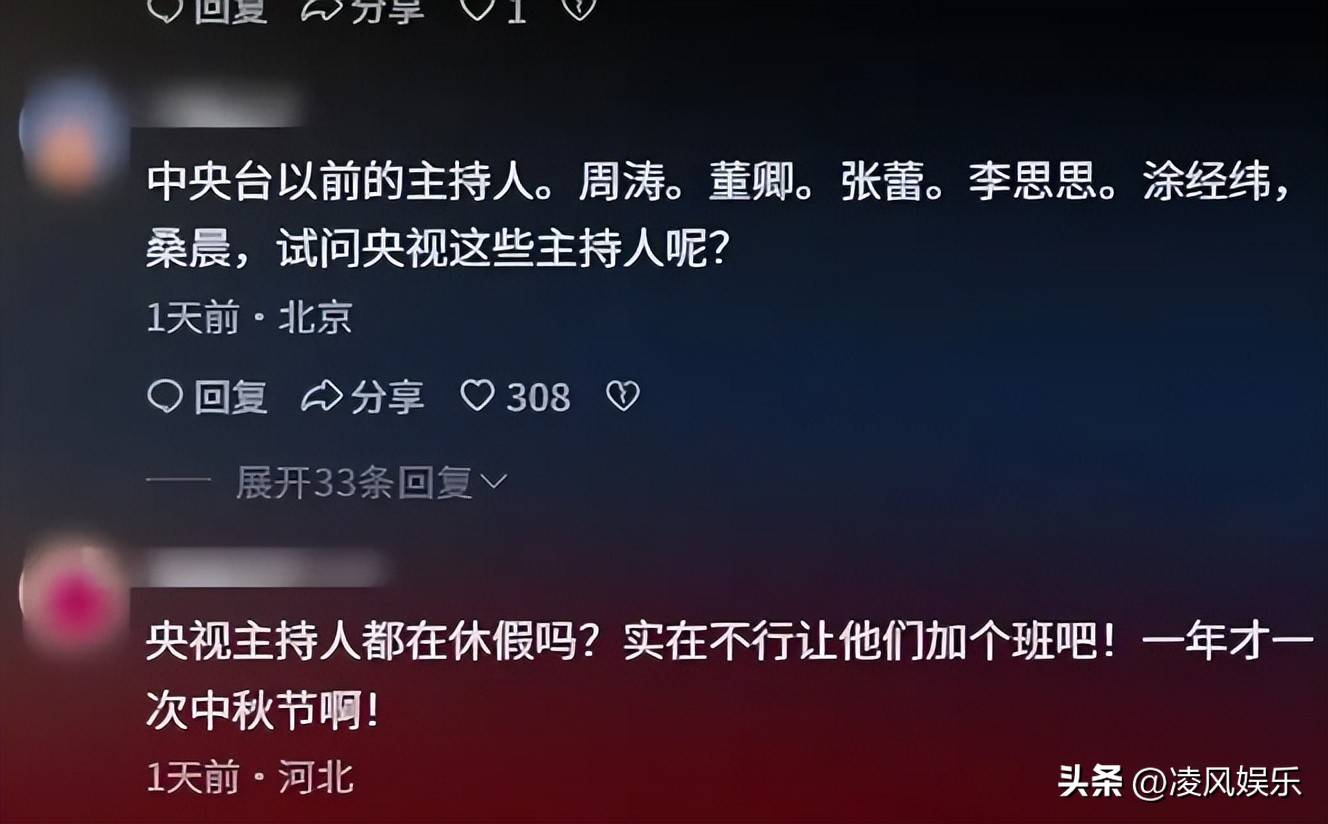 “央视主持人都在休假吗?实在不行让他们加个班吧!”